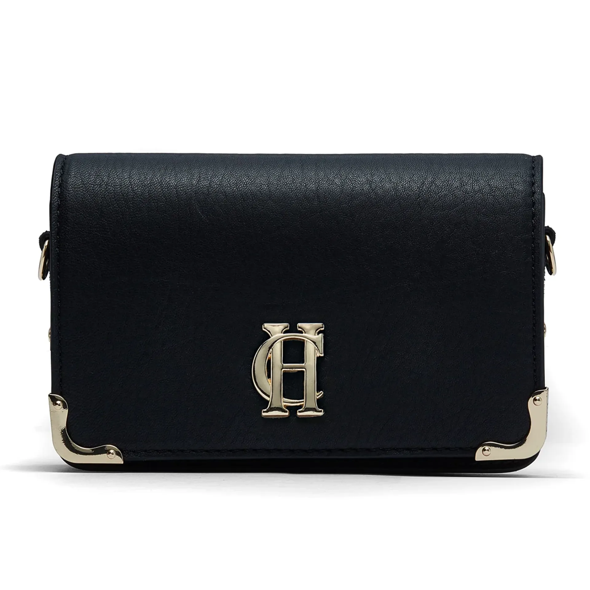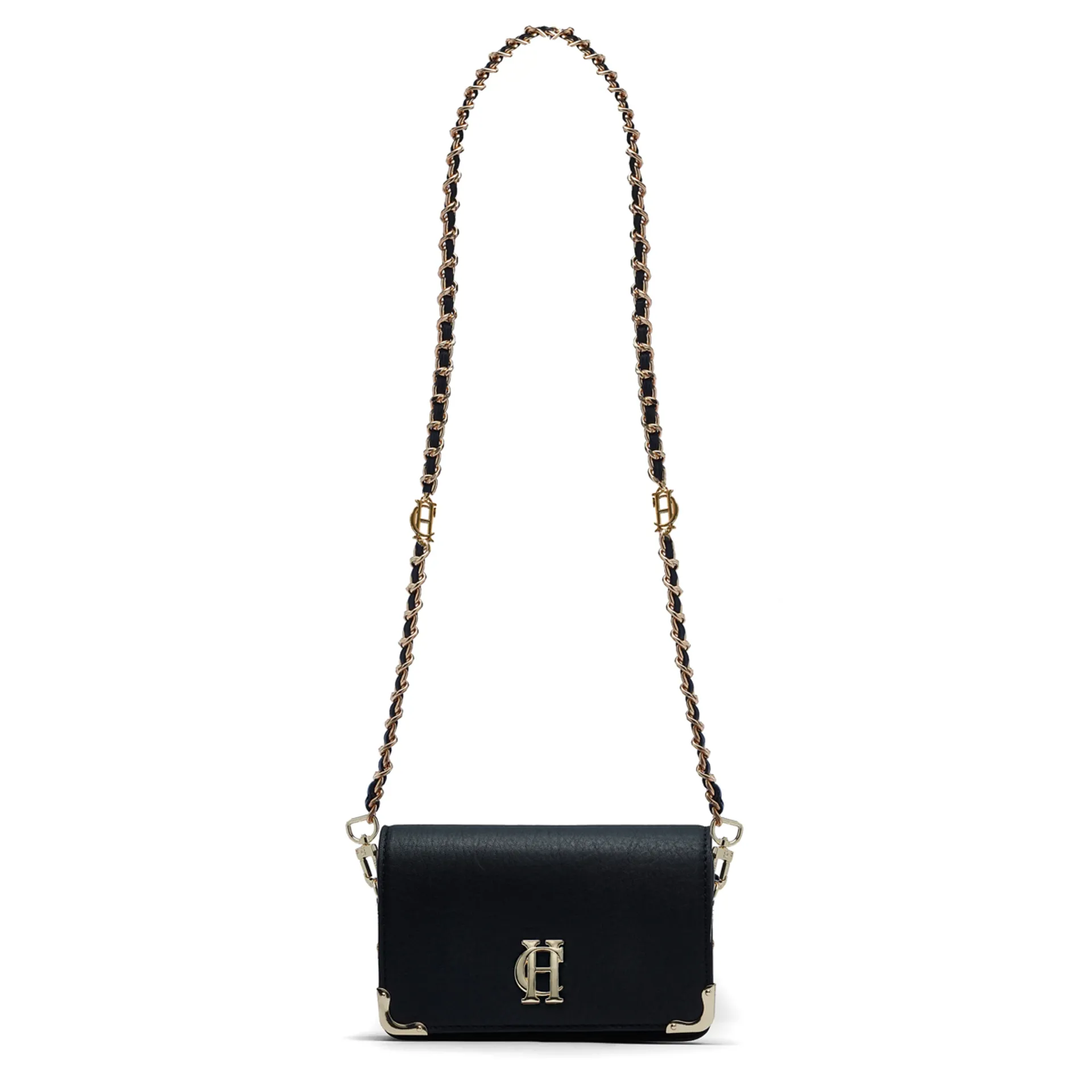 Handcrafted from the finest textured leather with a luxurious suede interior, this piece has been cleverly designed with a detachable chain strap so you can carry it as a clutch or drape it over your shoulder. With a petite construction, this feminine bag has been crafted with elegant, curved corners and elevated with our signature gold hardware. Finished with a magnetic closure and iconic HC monogram.