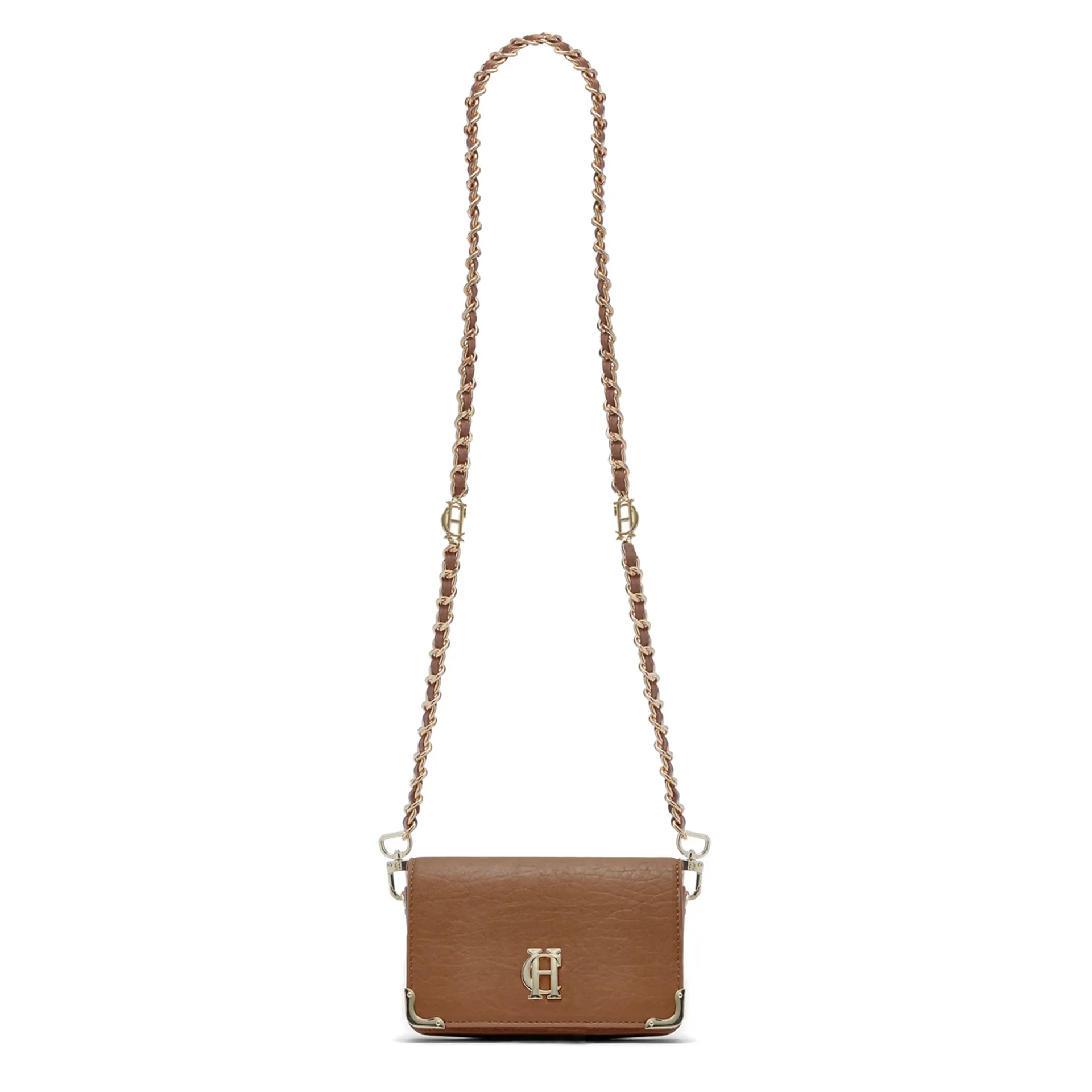Handcrafted from the finest textured leather with a luxurious suede interior, this piece has been cleverly designed with a detachable chain strap so you can carry it as a clutch or drape it over your shoulder. With a petite construction, this feminine bag has been crafted with elegant, curved corners and elevated with our signature gold hardware. Finished with a magnetic closure and iconic HC monogram.