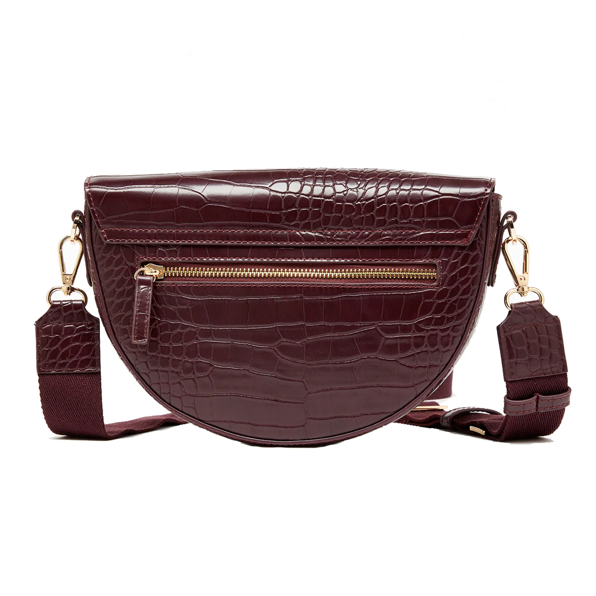 Designed to elevate everyday outfits, the Clara bag will be your favourite accessory for a long time to come. It's crafted from faux leather, has a half-moon shape, high-shine croc pattern and a cross body strap.