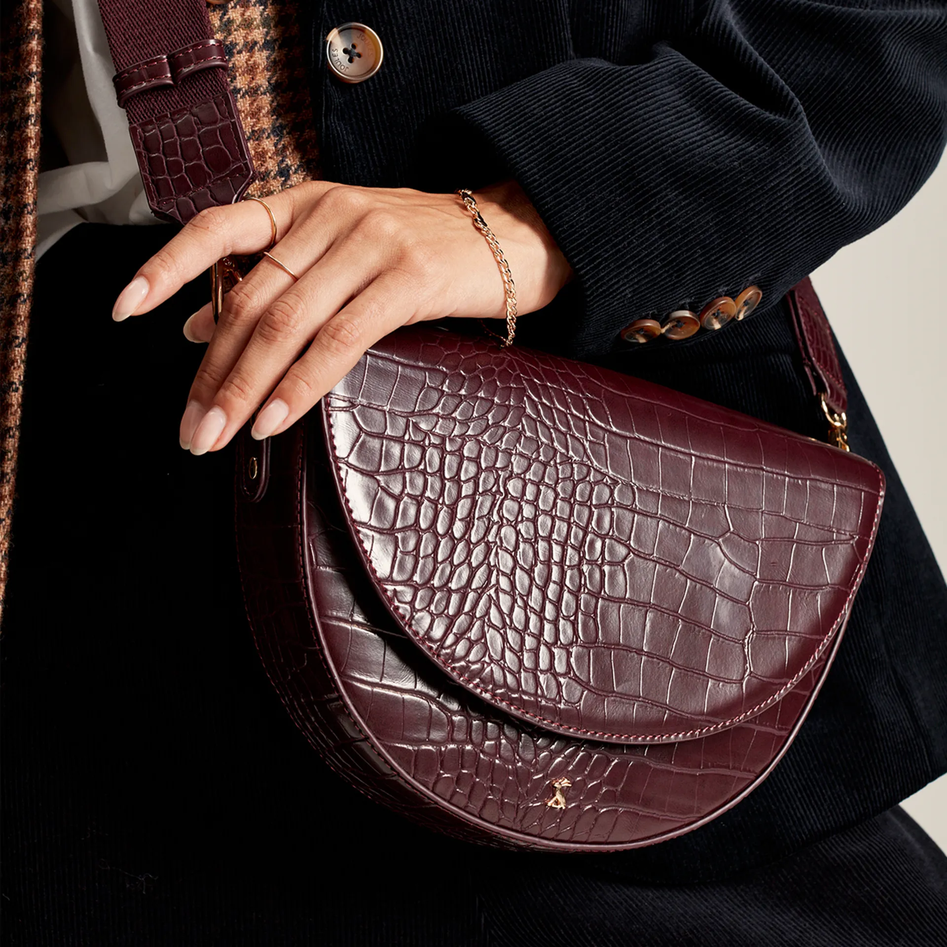 Question(s) answered about Joules Clara Half Moon PU Bag - Oxblood
