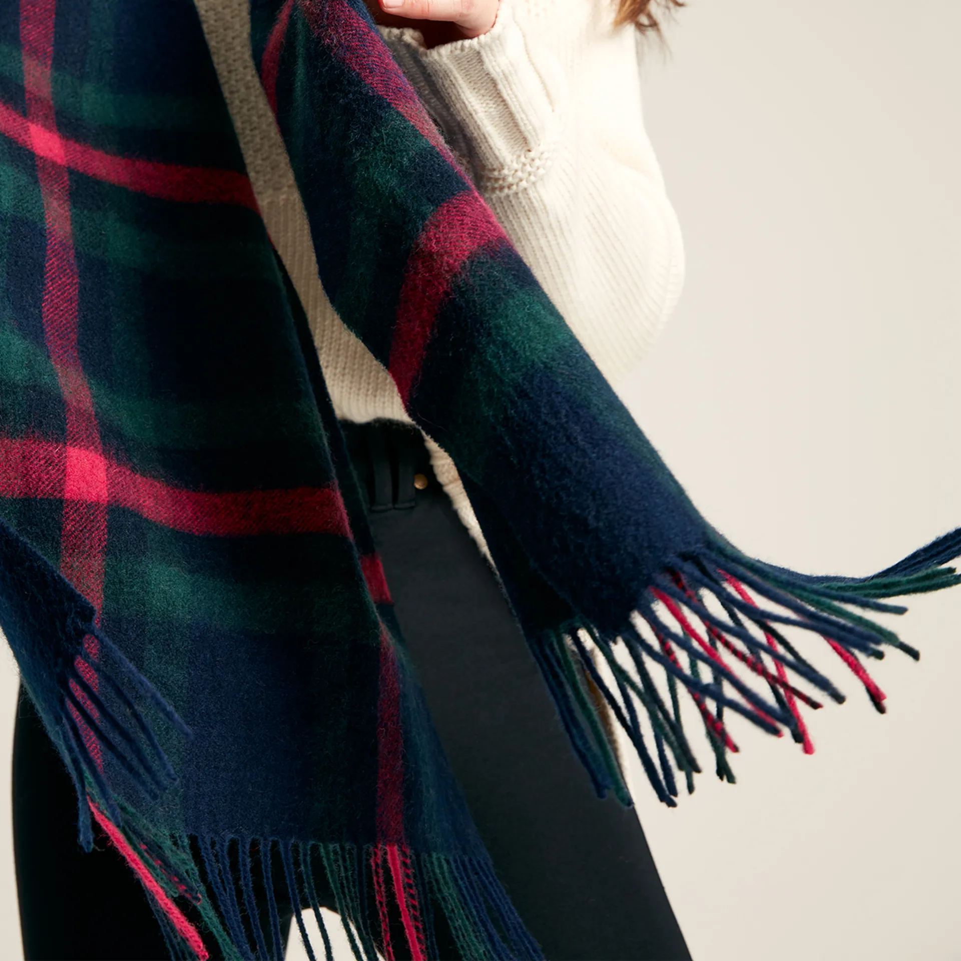 Featuring a classic check pattern in a rich, heritage colour palette, the Langtree will elevate your outdoor attire. It'll look quite the part teamed with a wax or quilted jacket. The rectangle shape lends itself perfectly to versatile styling and it's finished with tasselled ends and a Joules branded tab.