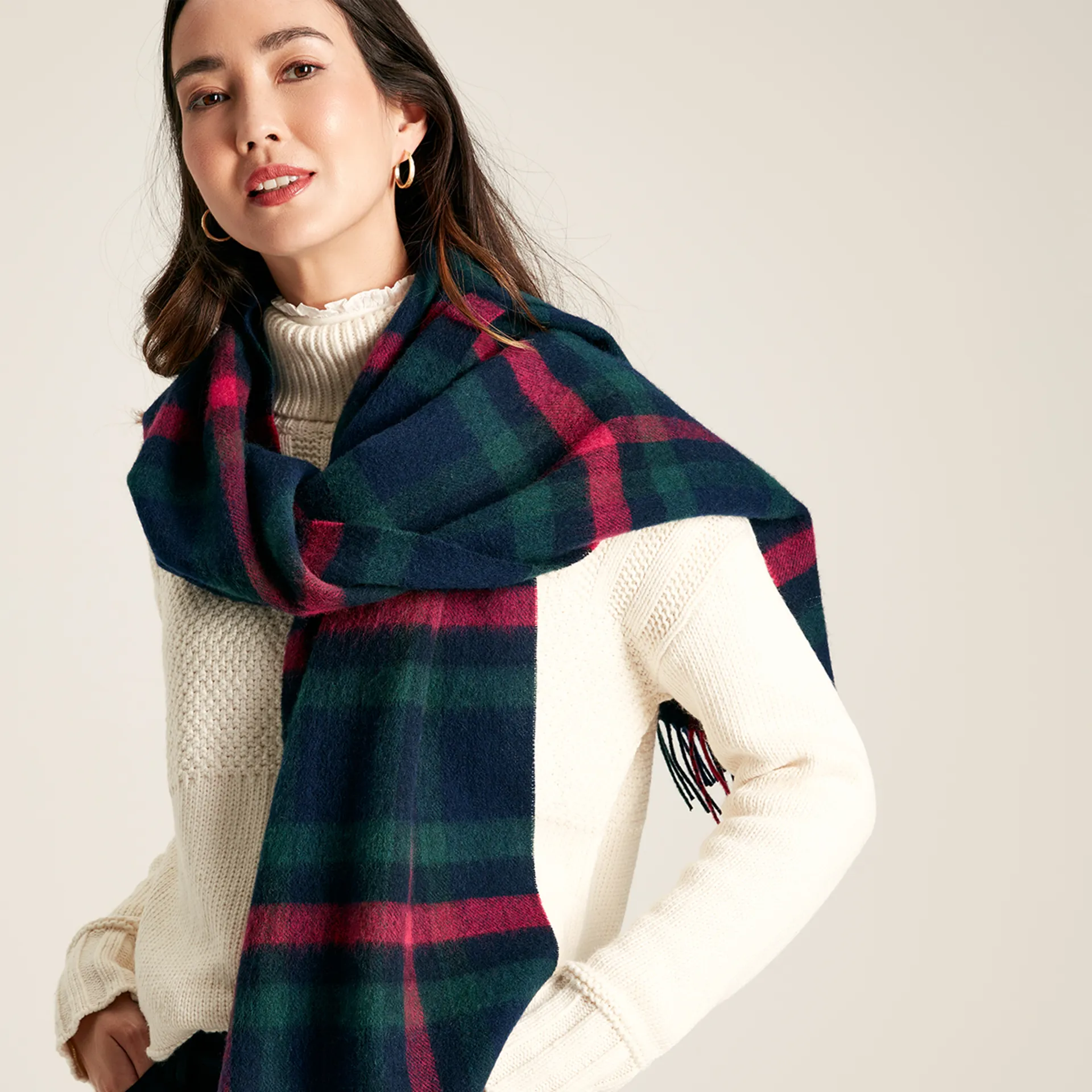 Question(s) answered about Joules Langtree Check Scarf - Navy Pink Check