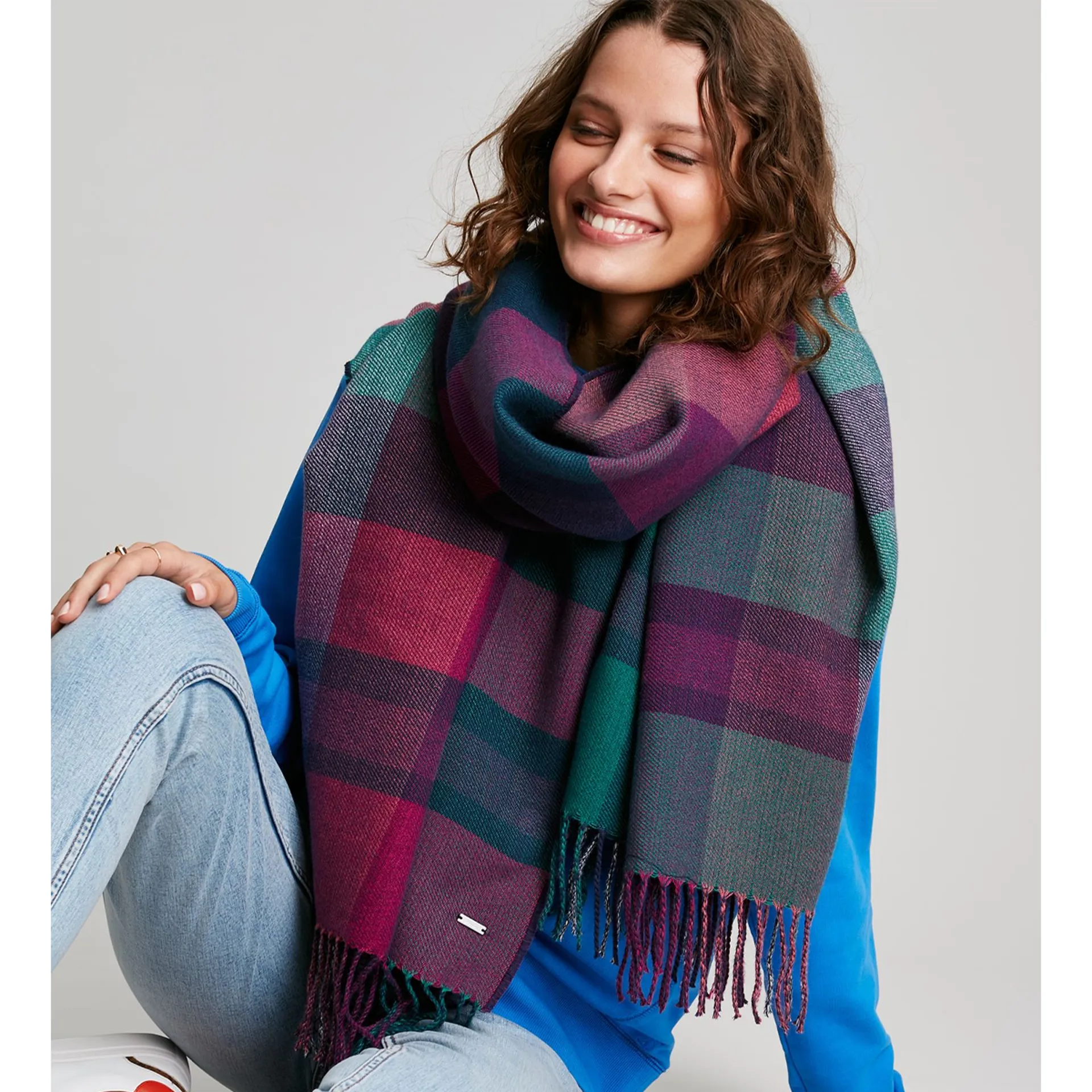 Question(s) answered about Joules Wetherby Check Scarf - Navy Pink Check