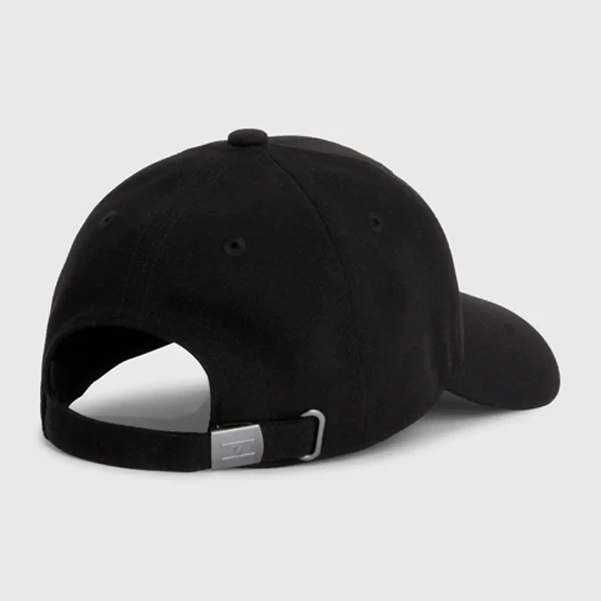 Baseball cap with clip closure at back and metallic TH embroidery at front.