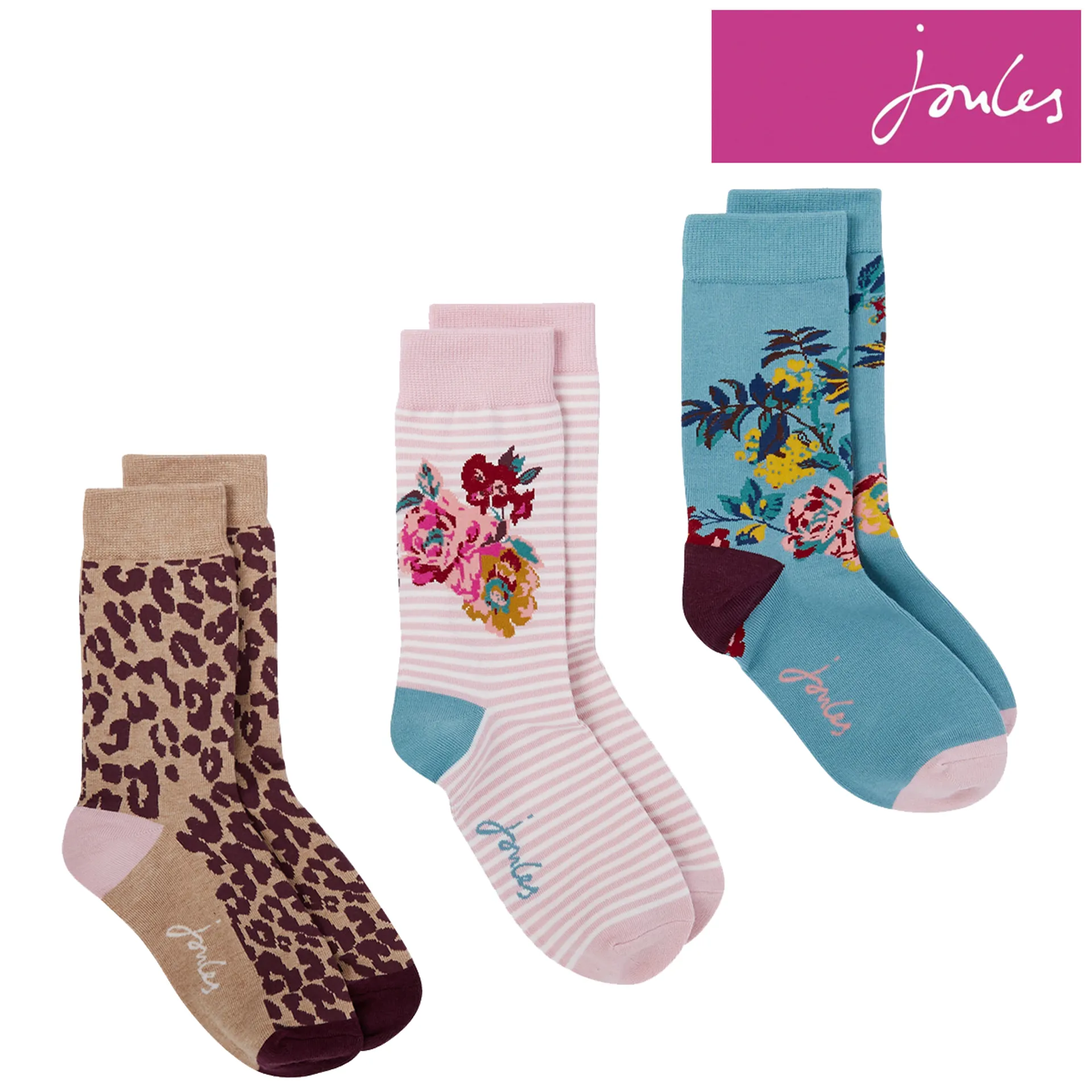 Joules 3Pk Brill Bamboo Socks - Cotswold Floral