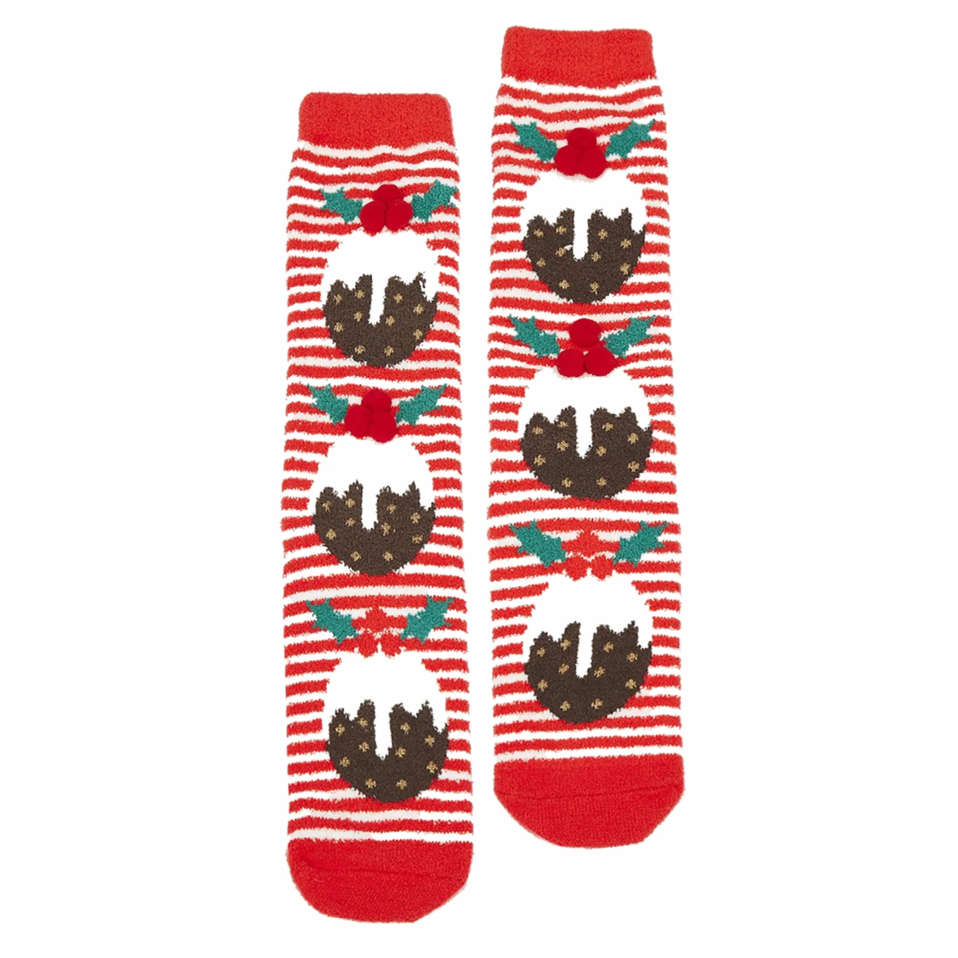 Joules Festive Fluffy Socks - Red Xmas Pudding