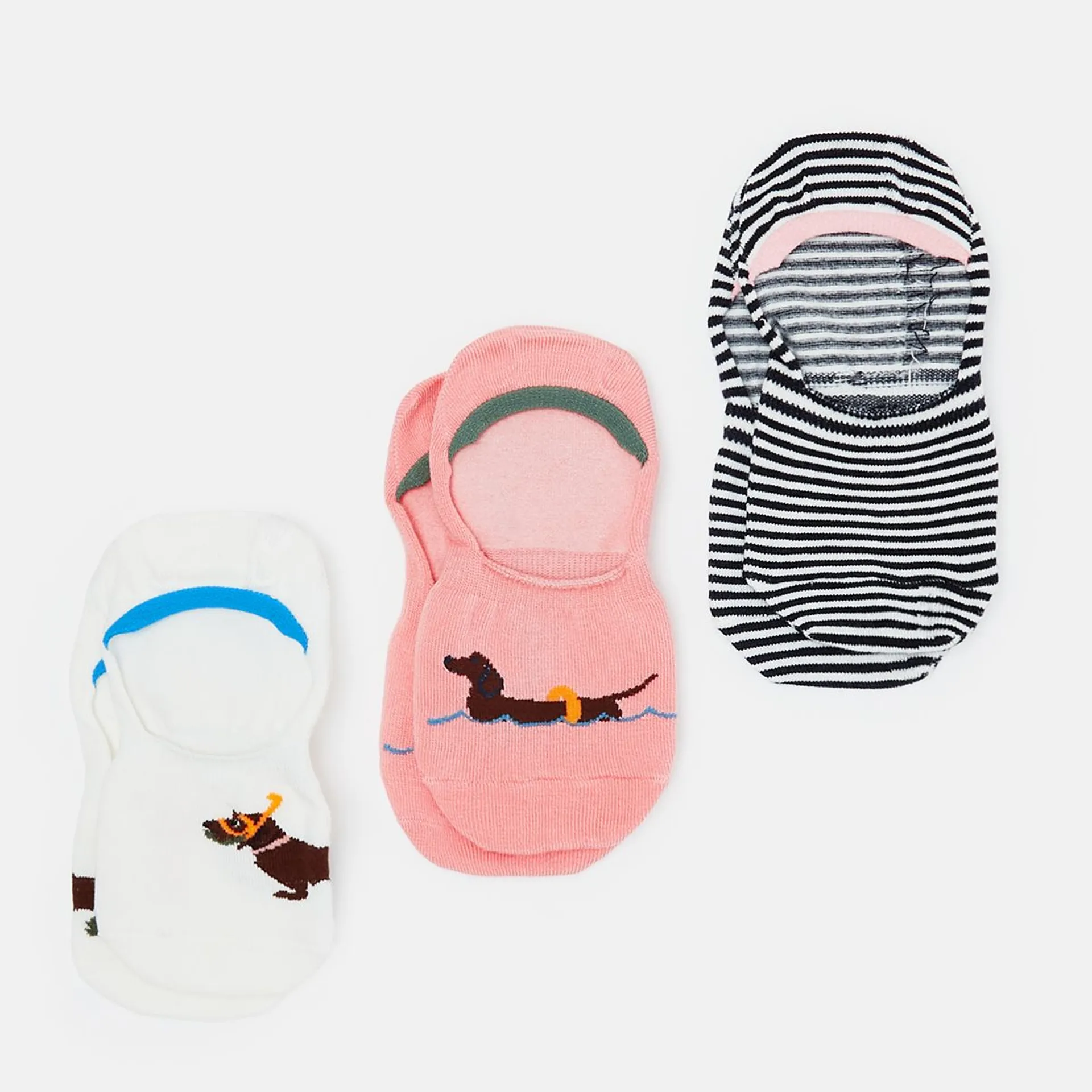 Joules Invisible 3 Pack Socks - Cream Swimming Dog