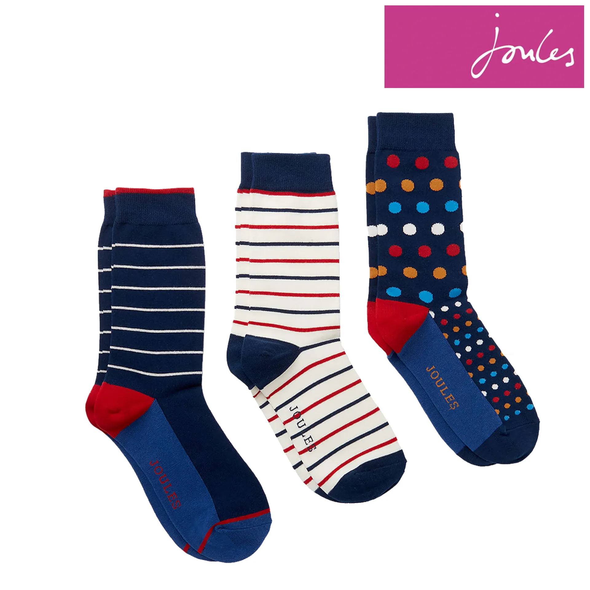 Joules Striking 3 Pack Cotton Socks - Multi Pack