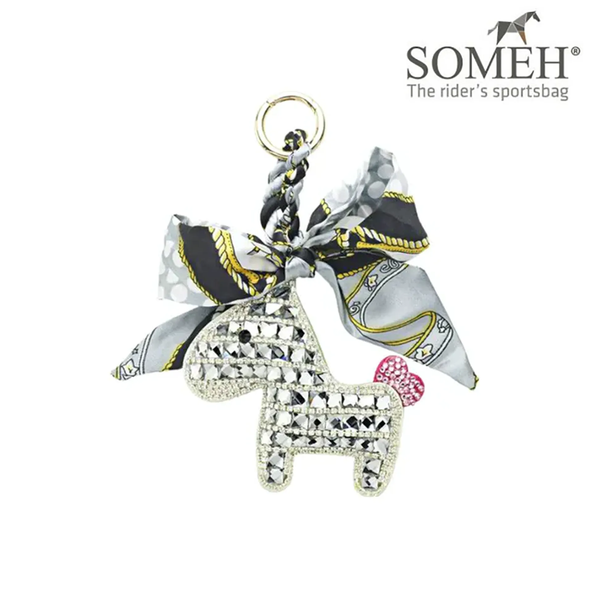A sparkly horse with a ribbon tie and bow. A sturdy link ring makes this ideal for keys, attaching to bags or anything you can think of! Makes the perfect gift for the horse person in your life that has everything!