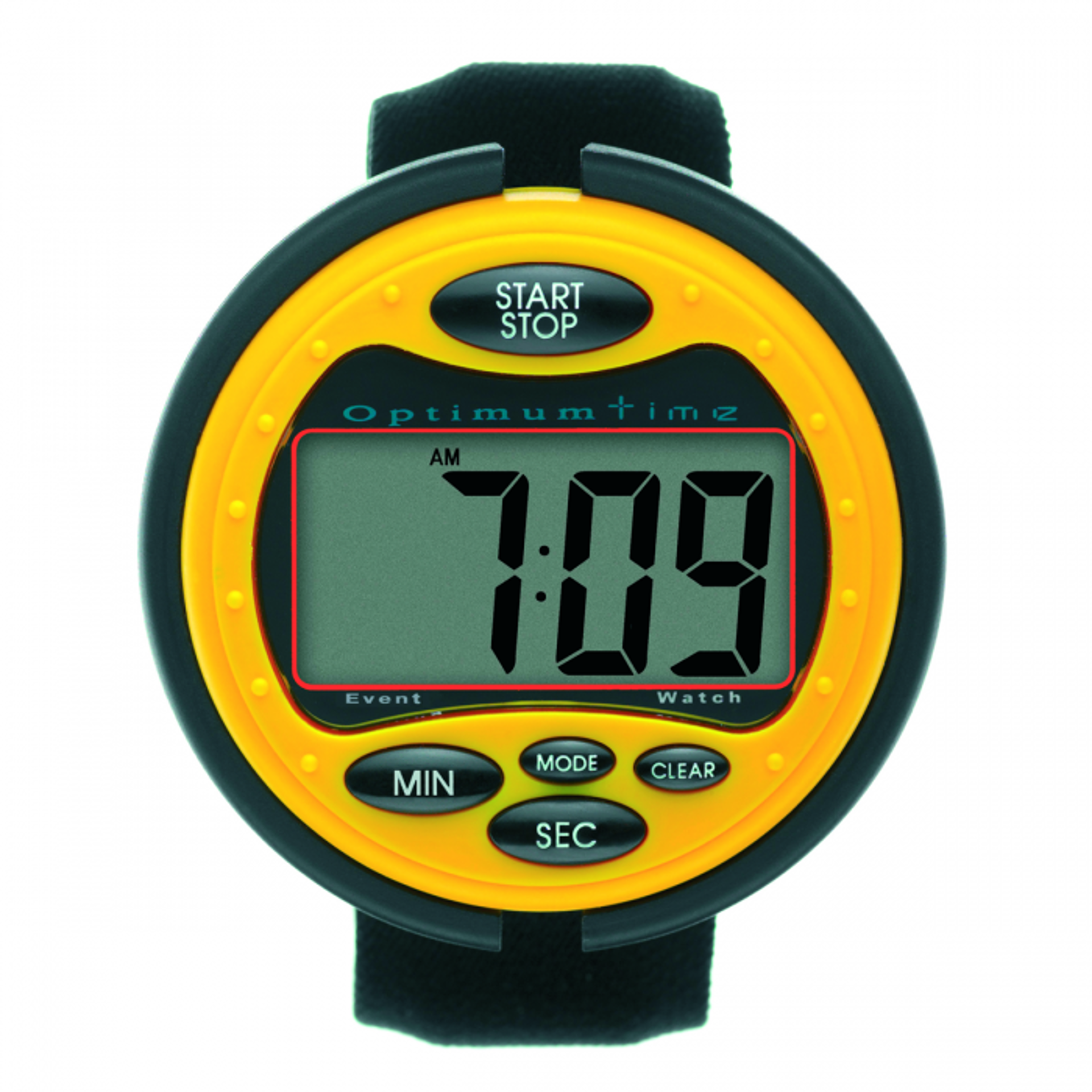 The Optimum Time Ultimate Event Watch. An easy to use eventing watch with a large clear LCD display screen with bold digits in a compact and comfortable design. Counts up and down and has an alarm feature.