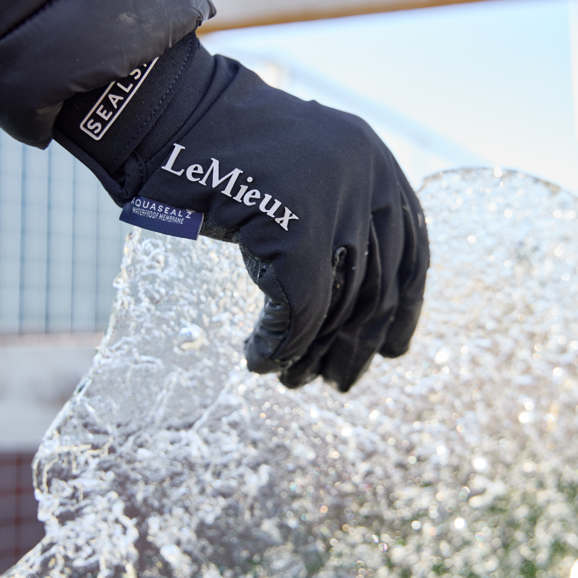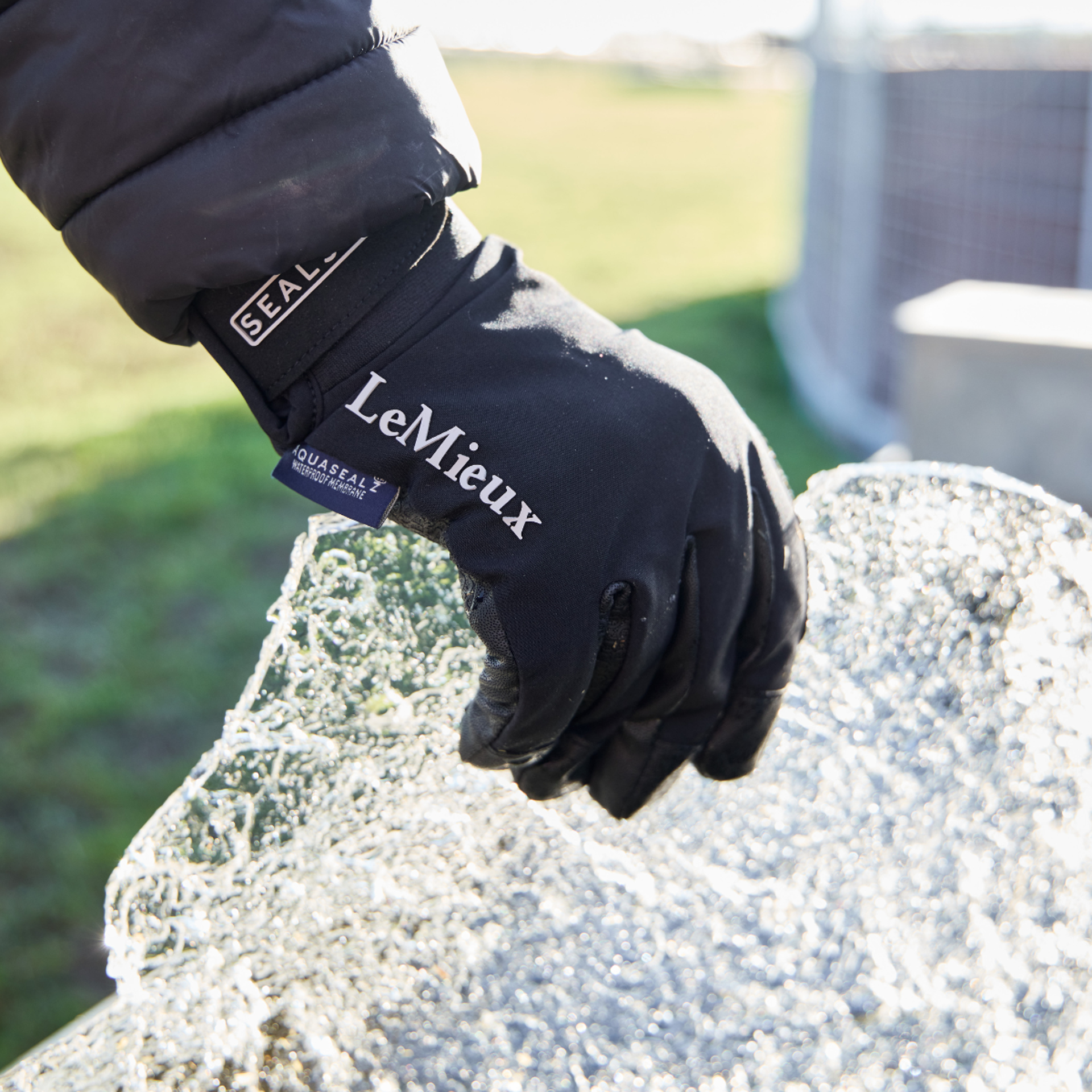 A completely waterproof horse riding glove with three-layer Aquasealz™ technology. A PU silicone grip palm provides optimal grip that improves with use, ensuring reins do not slip in wet conditions, while pre-curved touch screen fingers offer added dexterity when needed. An insulating breathable lining maintains warmth while letting perspiration escape. Control is guaranteed as the liner is non-slip. A premium riding glove that is suitable for riding in wet, windy and cold conditions.