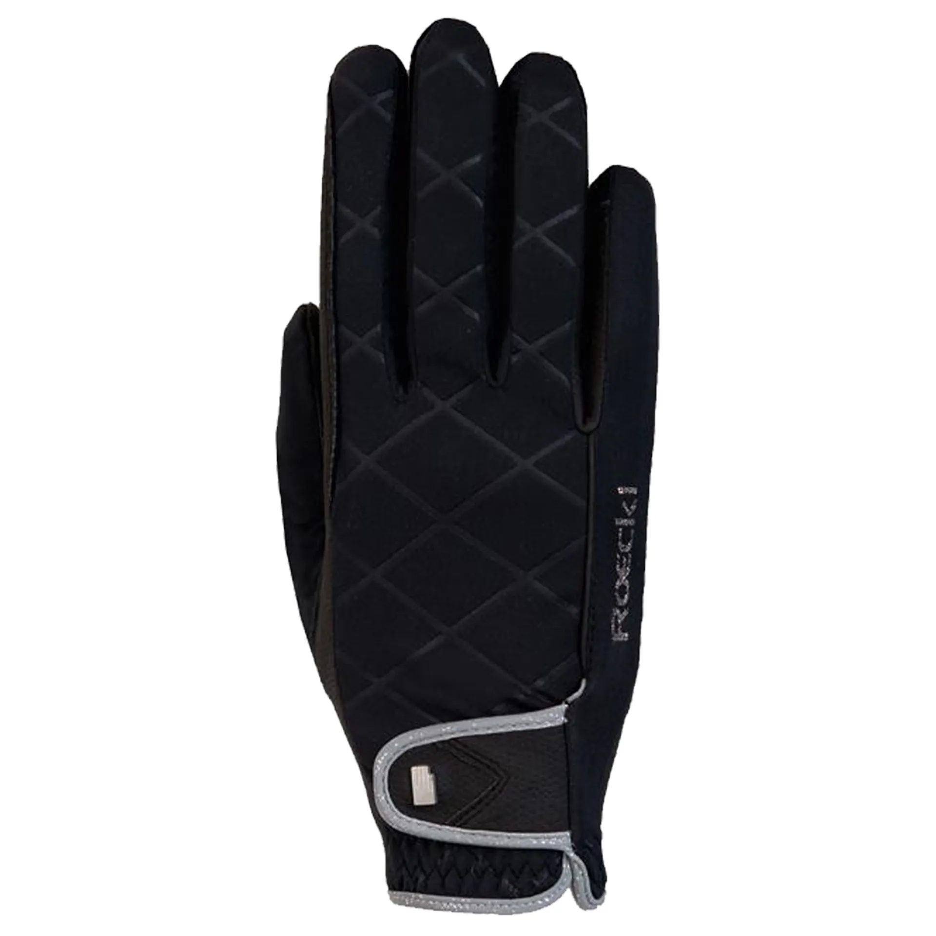 Glitter meets clever functionality meets unbeatable wear comfort–say hello to the JULIA riding glove designed by the Munich-based glove specialist ROECKL SPORTS! The elastic back hand made from windproof and highly breathable ROECK-PROOF® URAL SoftShell keeps the cold wind out while smoothly adapting to every movement your hands and fingers make –an extremely useful feature that provides the necessary tactility not just for handling the reins, but also for working on the ground or in the stable. This glove is designed for winter with its warming, fleece-laminated ROECK-GRIP® on the palm to keep your hands cozy and warm while at the same time guaranteeing maximum grip and tactility. Thanks to ROECKL’s exclusive COMFORT-CUT, this slender glove fits like a second skin and does not require additional facing on the index finger. Last, but not least: the design! The stylish, embossed rhombus pattern is on the backhand is complemented by color-contrasting binding, the glittering ROECKL stick logo extending from the little finger, and the silver or golden metallic ROECKL hand logo on the elegant back hand Velcro fastener. The latter lets you fine-tune the already excellent fit. In addition to classic black and earthy brown, this model is also available in trendy crimson. There’s no doubt about it: With its special look and highly functional features, the JULIA is sure to be a favorite with all female equestrians! And since it’s virtually impossible to keep gloves clean for long when working in the stables, this model is machine-washable at 30°C (86°F).