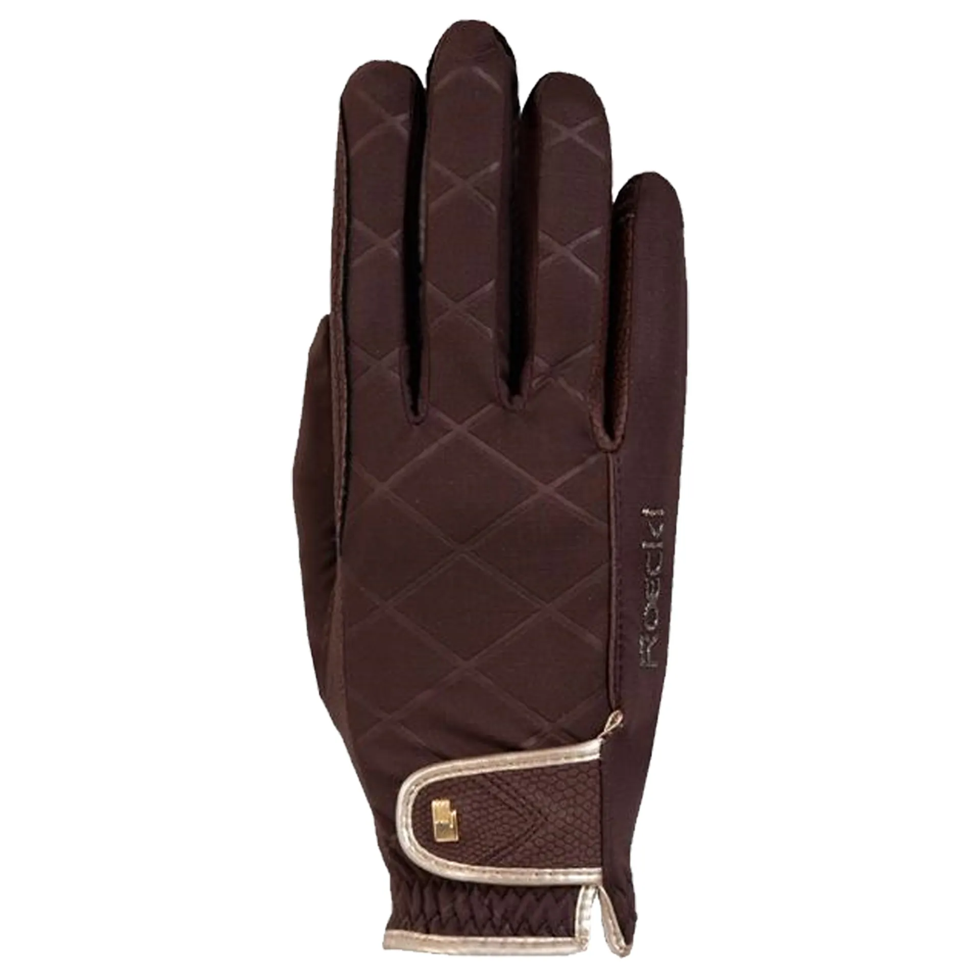 Glitter meets clever functionality meets unbeatable wear comfort–say hello to the JULIA riding glove designed by the Munich-based glove specialist ROECKL SPORTS! The elastic back hand made from windproof and highly breathable ROECK-PROOF® URAL SoftShell keeps the cold wind out while smoothly adapting to every movement your hands and fingers make –an extremely useful feature that provides the necessary tactility not just for handling the reins, but also for working on the ground or in the stable. This glove is designed for winter with its warming, fleece-laminated ROECK-GRIP® on the palm to keep your hands cozy and warm while at the same time guaranteeing maximum grip and tactility. Thanks to ROECKL’s exclusive COMFORT-CUT, this slender glove fits like a second skin and does not require additional facing on the index finger. Last, but not least: the design! The stylish, embossed rhombus pattern is on the backhand is complemented by color-contrasting binding, the glittering ROECKL stick logo extending from the little finger, and the silver or golden metallic ROECKL hand logo on the elegant back hand Velcro fastener. The latter lets you fine-tune the already excellent fit. In addition to classic black and earthy brown, this model is also available in trendy crimson. There’s no doubt about it: With its special look and highly functional features, the JULIA is sure to be a favorite with all female equestrians! And since it’s virtually impossible to keep gloves clean for long when working in the stables, this model is machine-washable at 30°C (86°F).