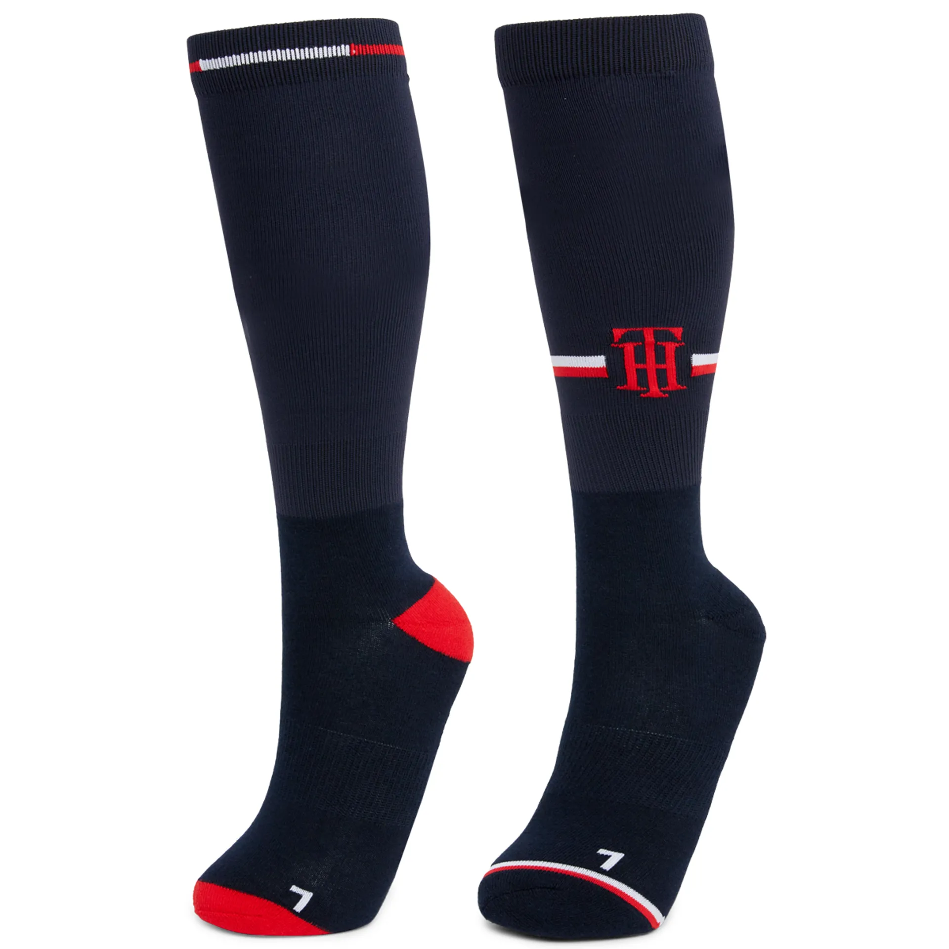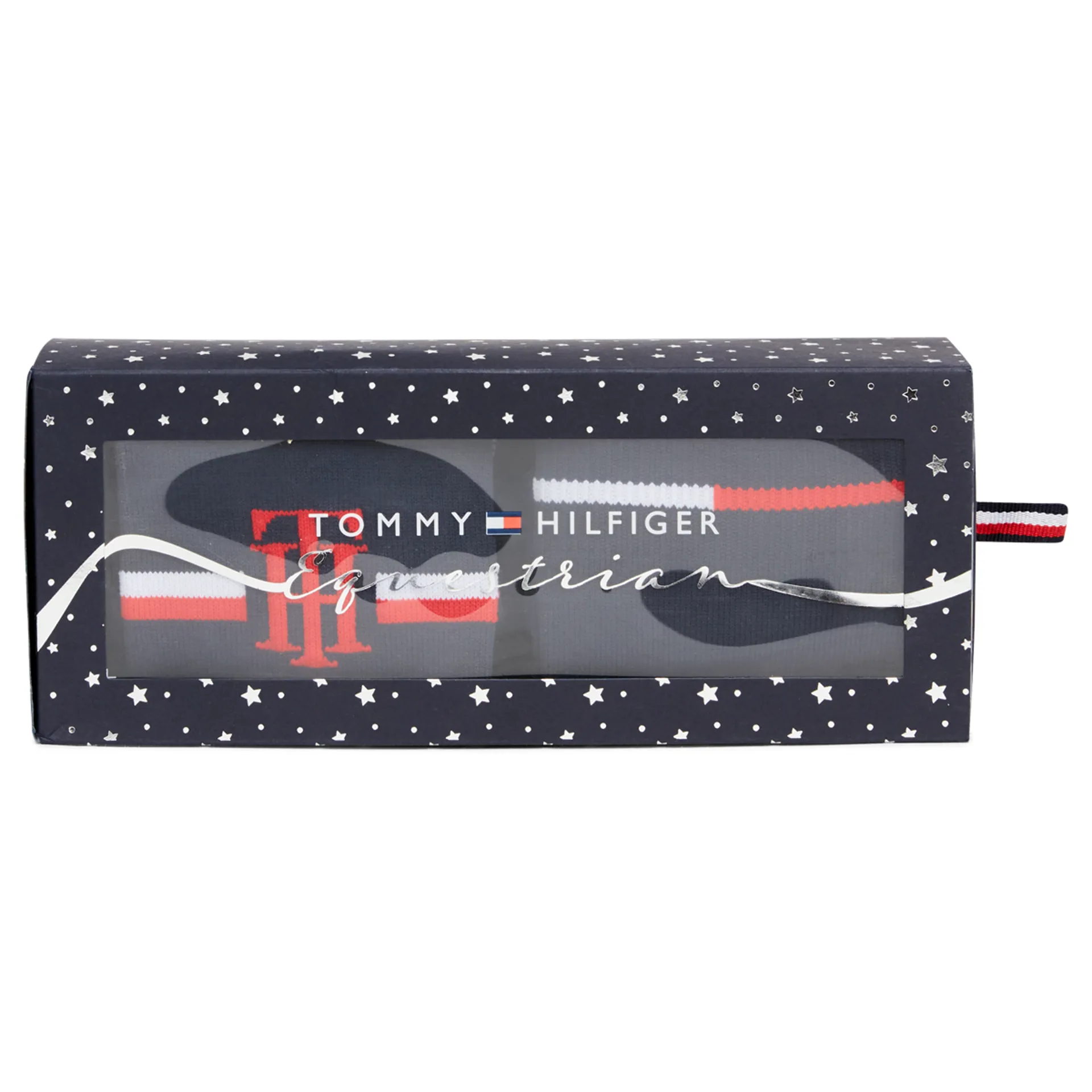 Women's winter equestrian sock set featuring the Tommy Hilfiger Global Stripe design. Ergonomically shaped around the arch and ankle for extra comfort and performance. Comes beautifully presented in a Tommy Hilfiger Equestrian holiday gift box.