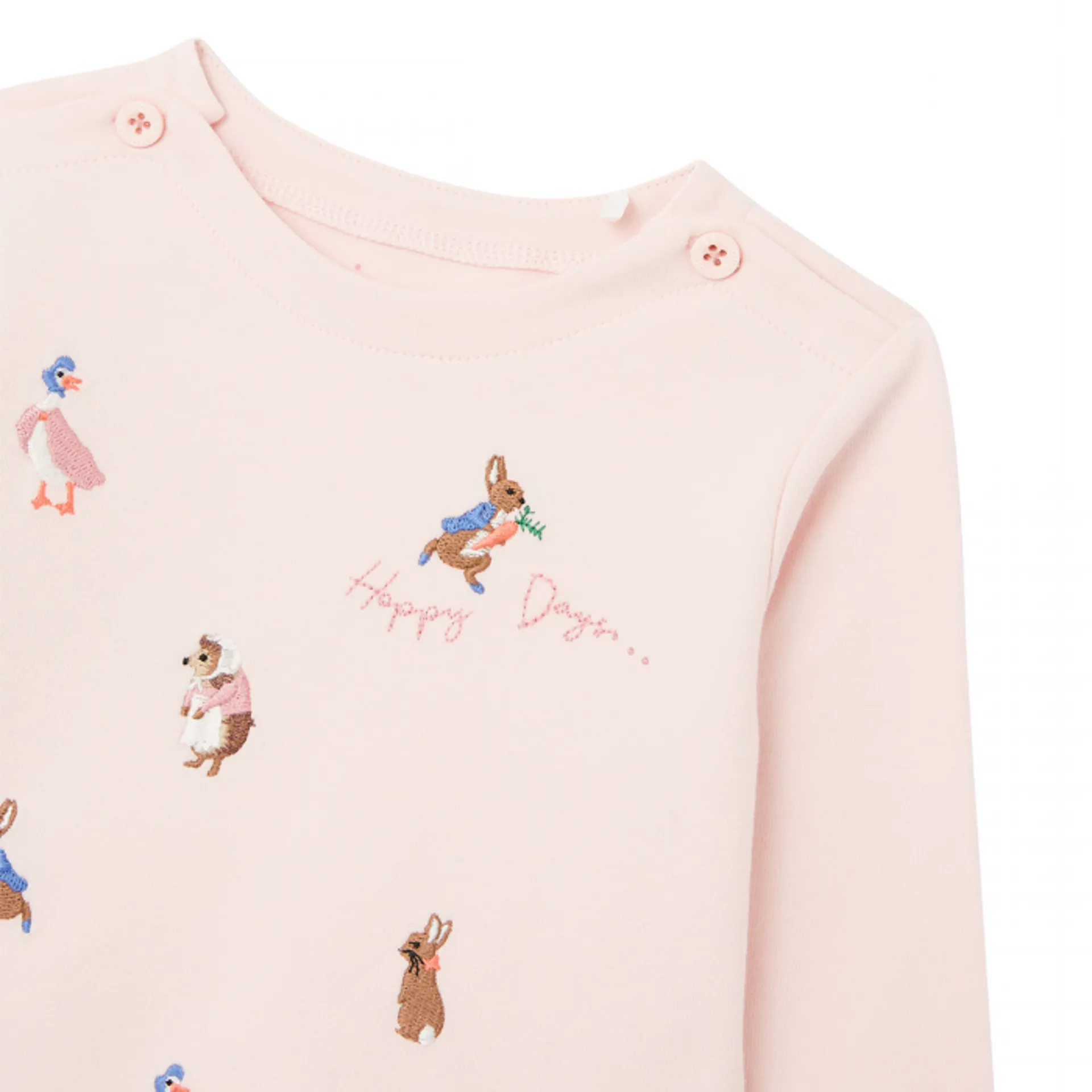 Peter Rabbit and his friends are causing mischief again! This super soft style is crafted from 100% cotton and has hopped, skipped and jumped into our official Peter Rabbit collection. Adorned with lots of character appliques and with long sleeves, little layers have never looked cuter.