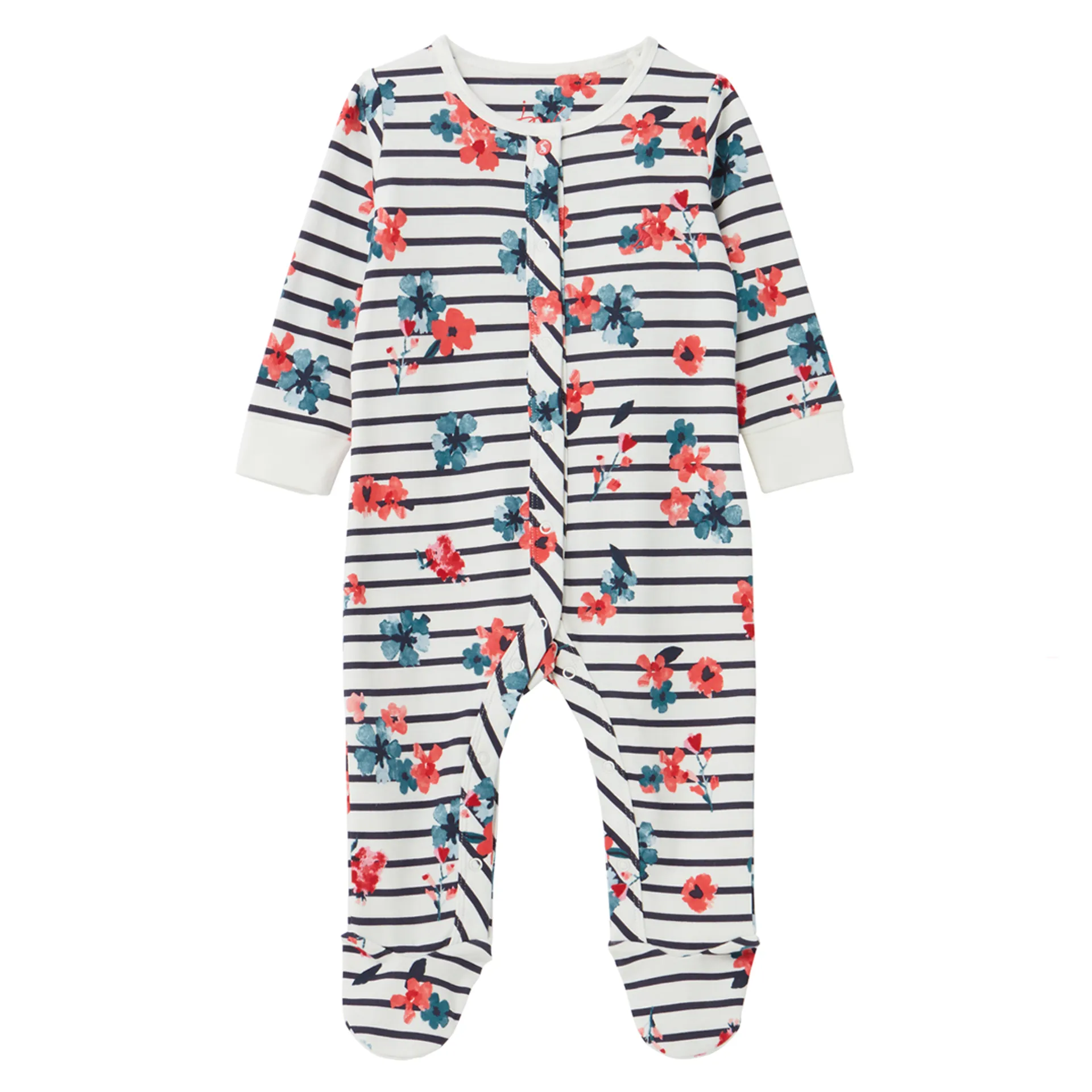 This all in one babygrow is crafted from the finest cotton and adorned with a delightful only-at-Joules print. Its super soft feel will have baby feeling nice and snug and its fully enclosed feet will keep those little ts warms! We’ve even thought of every detail and have added integral scratch mitts as well as poppers for easy-on and easy-off.