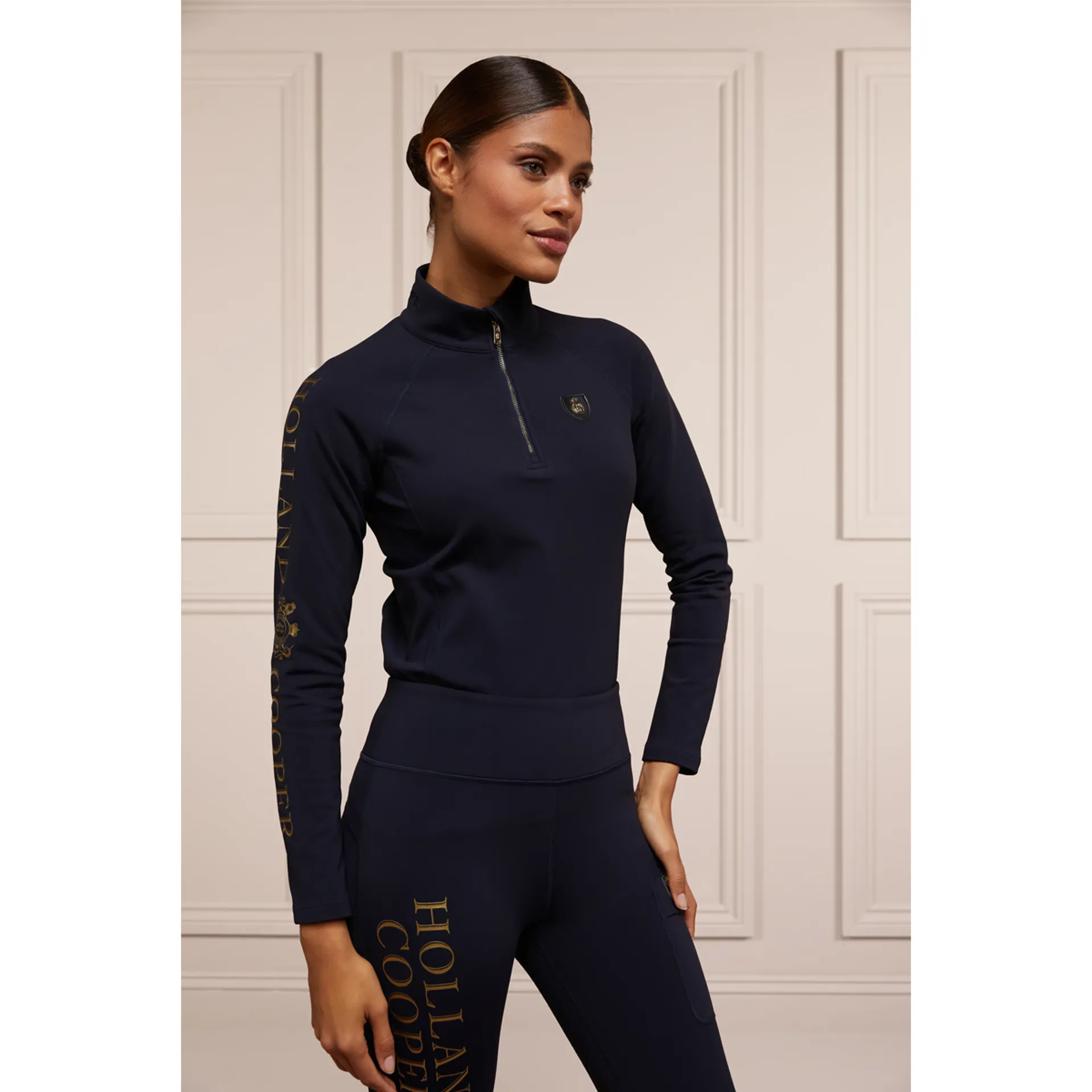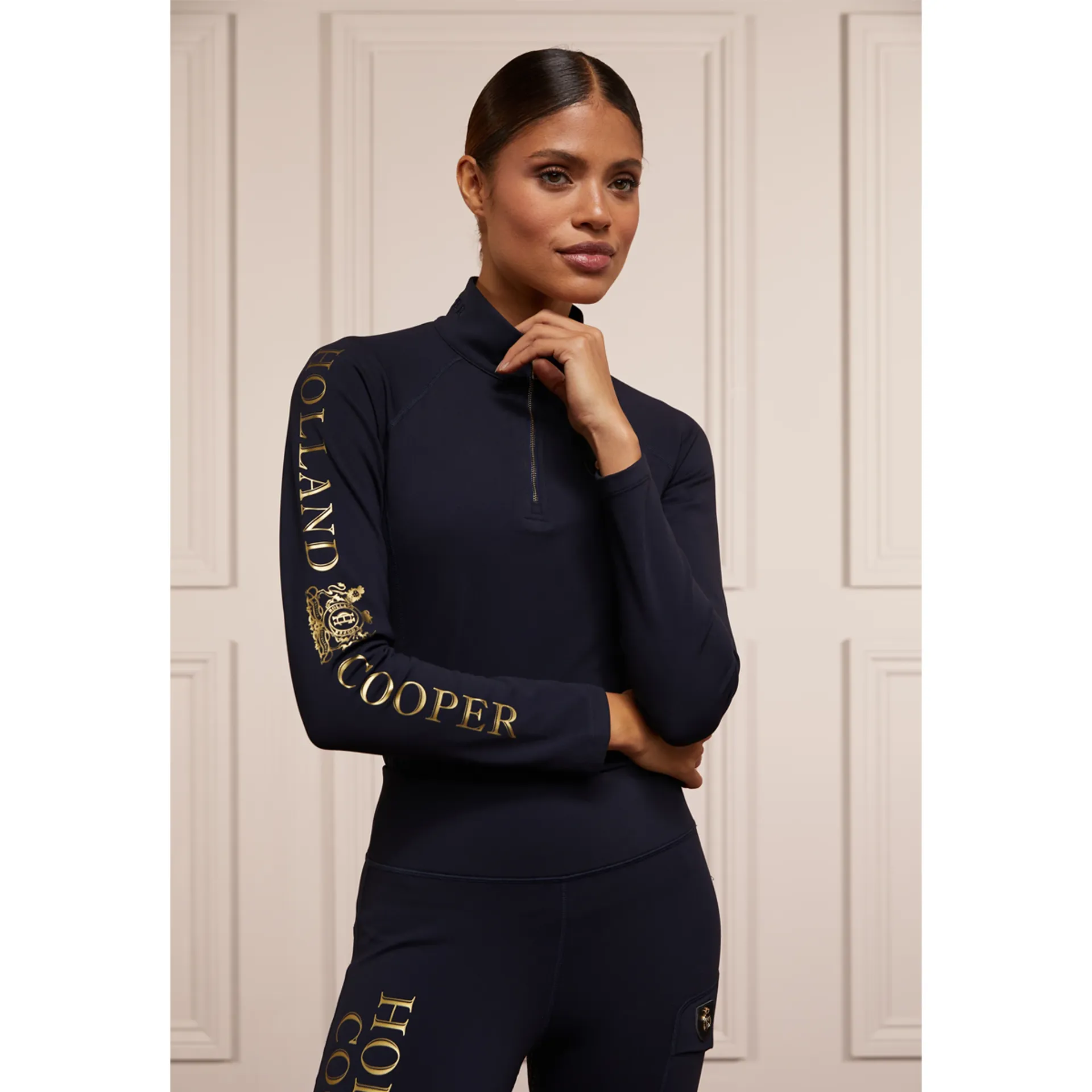 Designed to be both comfortable and practical, our Halcot Thermal Base Layer is crafted from a thermal regulating fabric with a luxurious fleece lining to lock in warmth. Created with a high neckline and made from a super stretchy water-resistant fabric to keep you dry and supported. Adorned with luxury gold foil branding and our signature HC monogrammed gold zip.