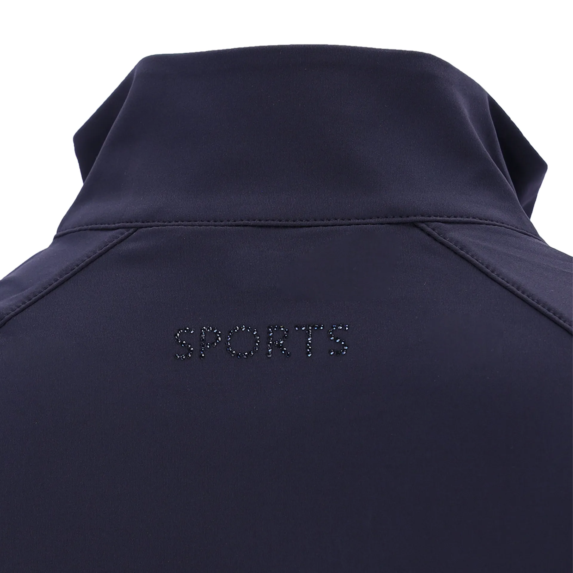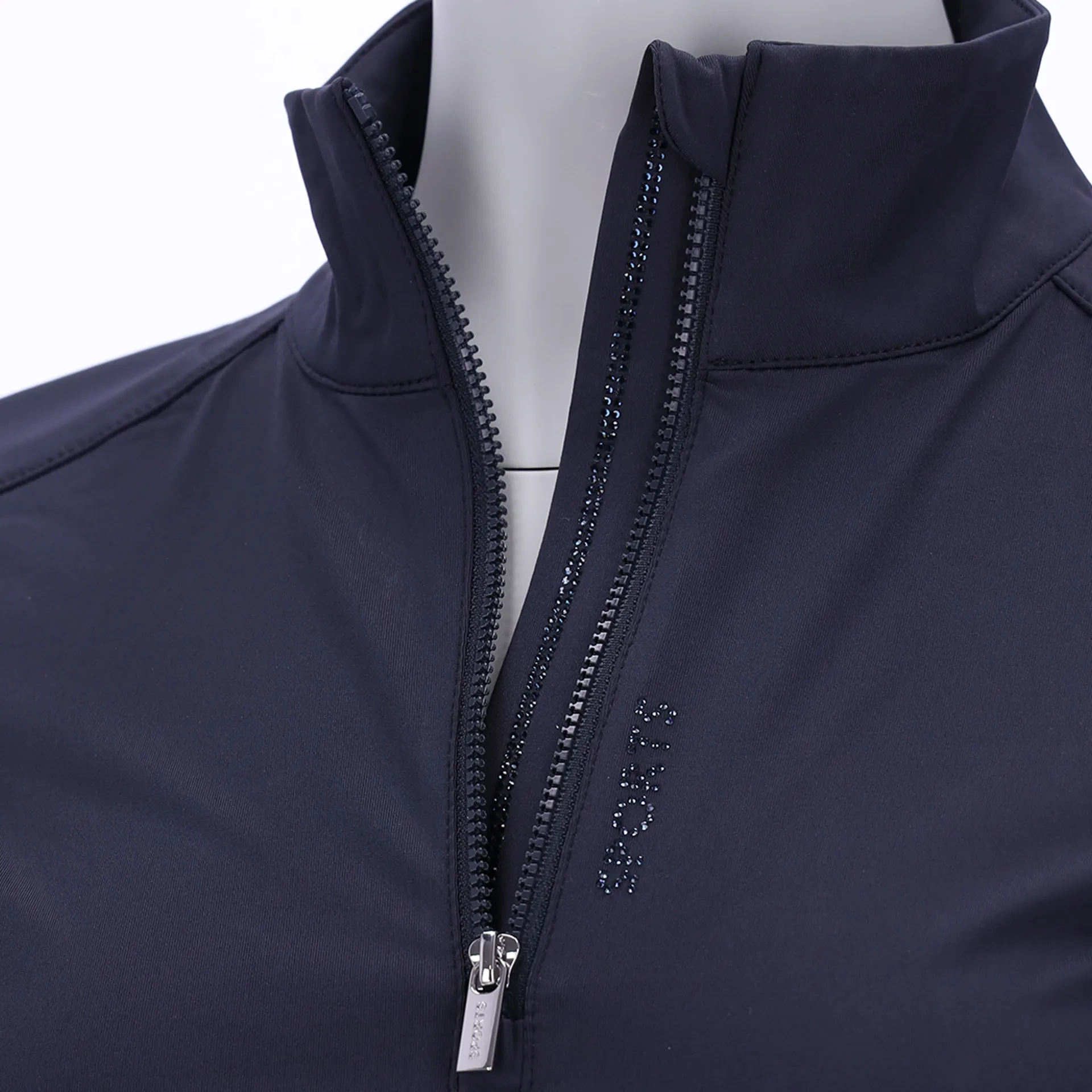• Logo rhinestone motif next to the zipper, on the lower side seam and on the left sleeve hem