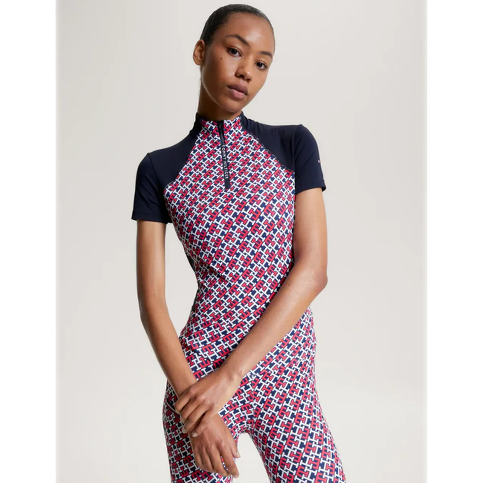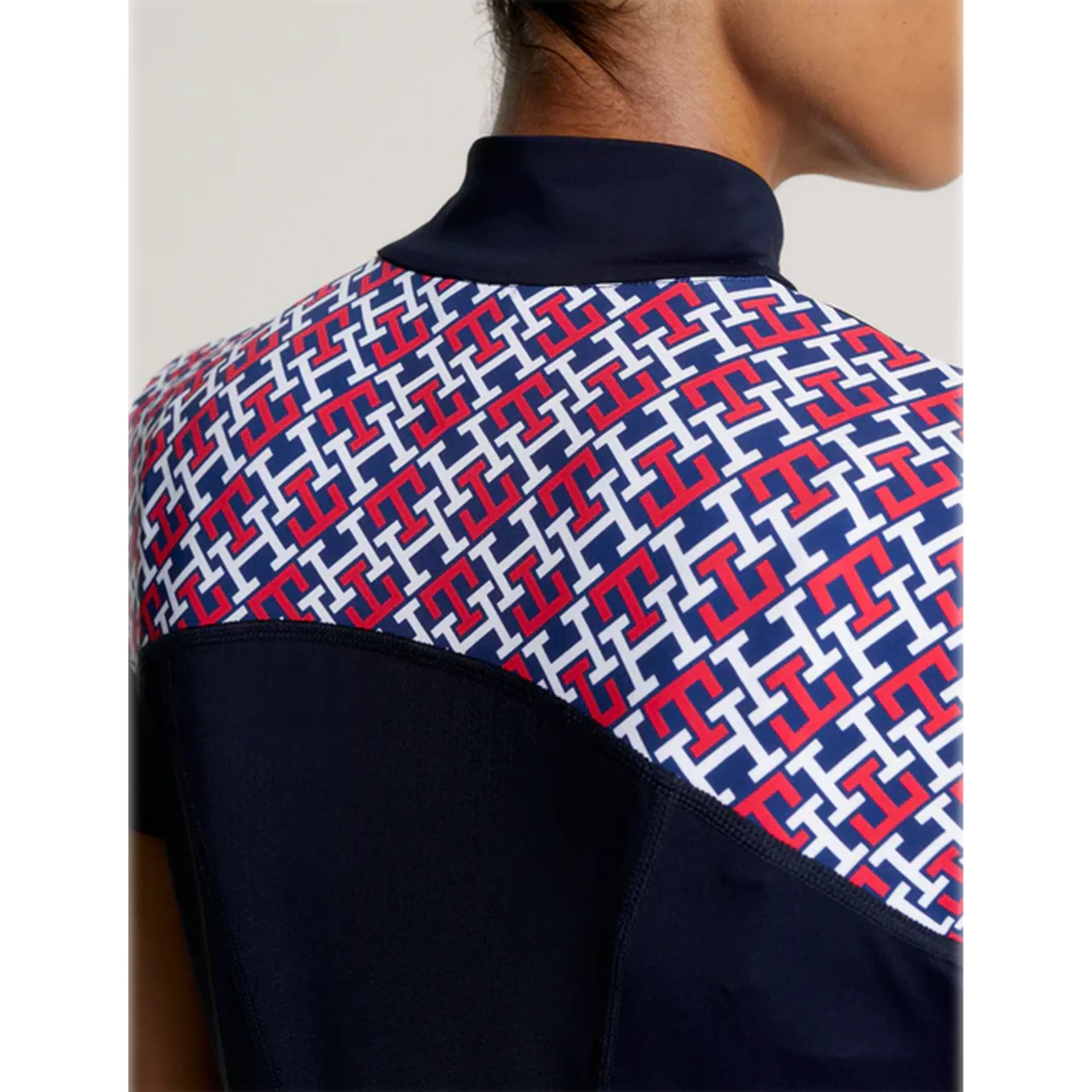 The Denver short sleeve training top is a must have for warmer days and perfect for layering. Designed in a panelled Monogram print, quick drying fabric to keep you cool and comfortable during your training sessions. Featuring a 1/4 zip and short stand up collar, contrast fabric panel inserts and stylized seaming. The iconic Tommy Hilfiger Horse flag on the sleeve completes the look.