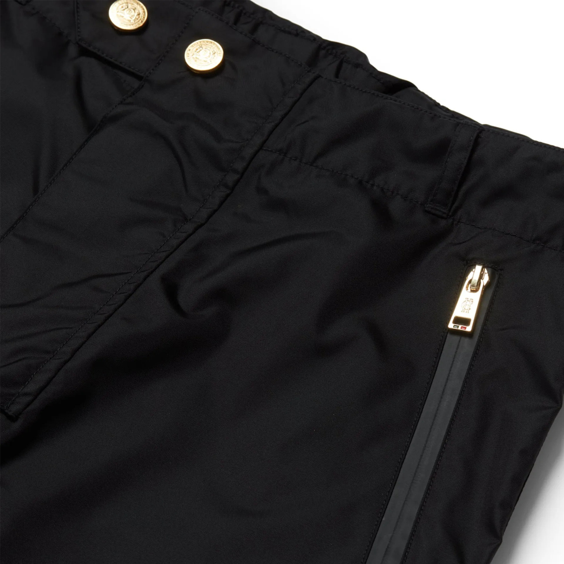 Created with a flattering fit from a matte finished, canvas fabric with soft fleece lining, the reflective piping aids visibility out in severe weather. Detailed with our statement branding, gold hardware and waterproof zip pockets.