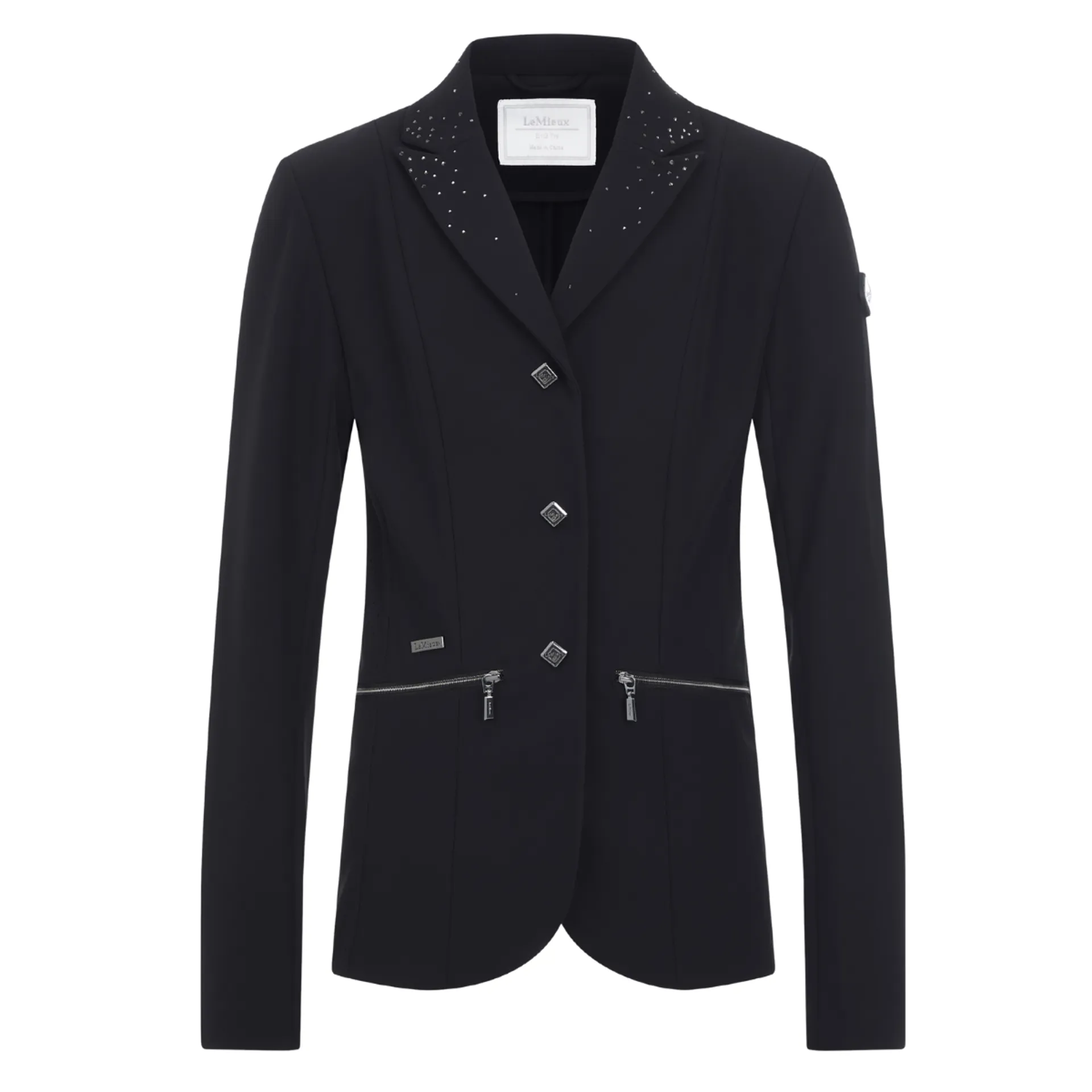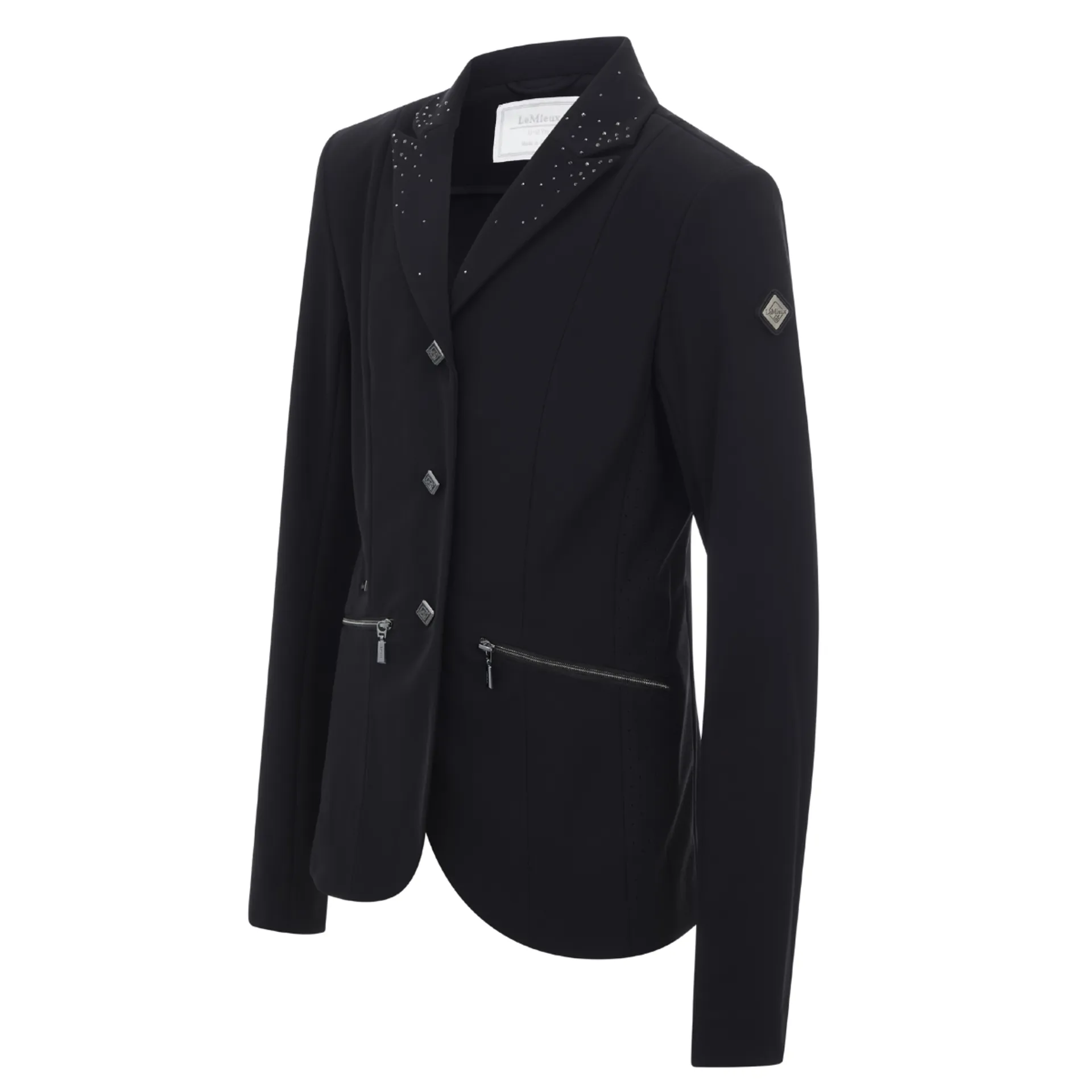 Sophisticated crystal details on the collar, back belt and split tail tips give a sophisticated edge, while subtle LeMieux branded finishing touches on the hip and arm convey quiet confidence.