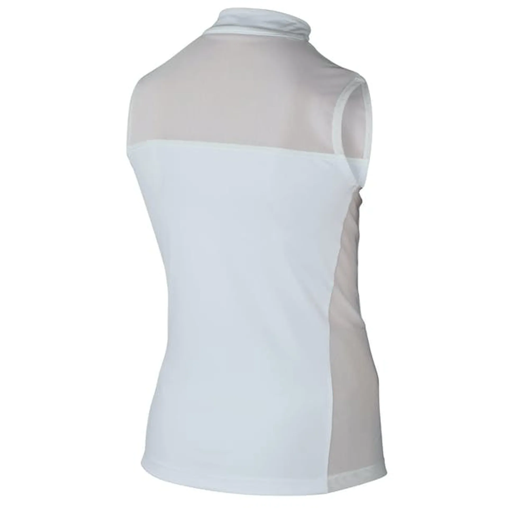 A flattering, sleeveless show shirt made from stretch, quick dry fabric.