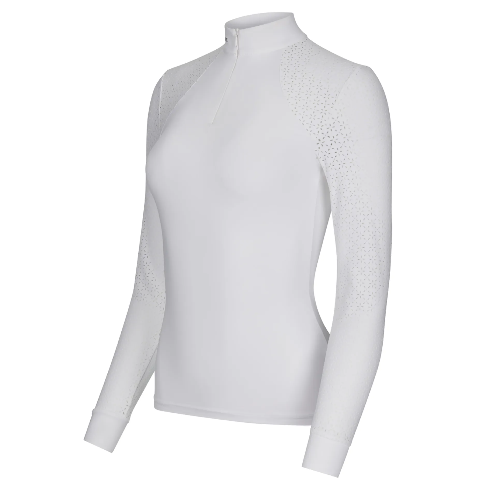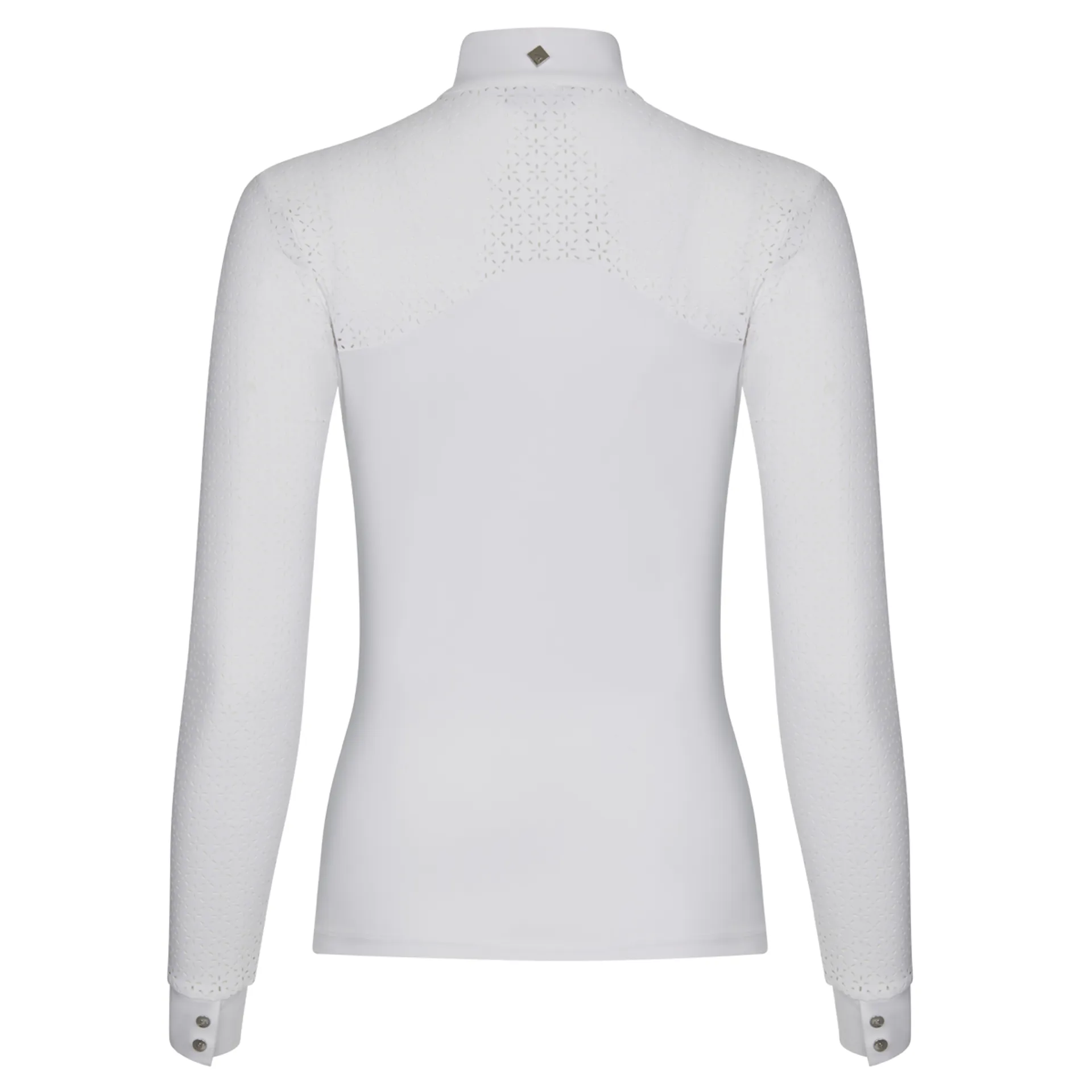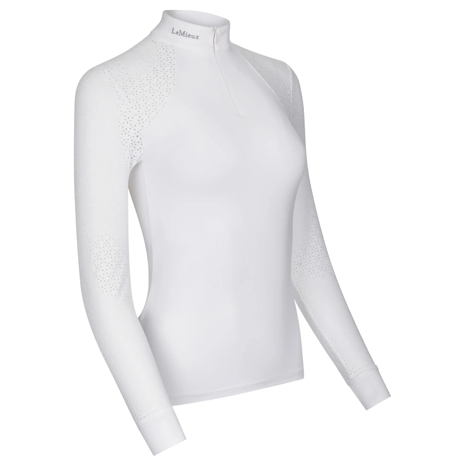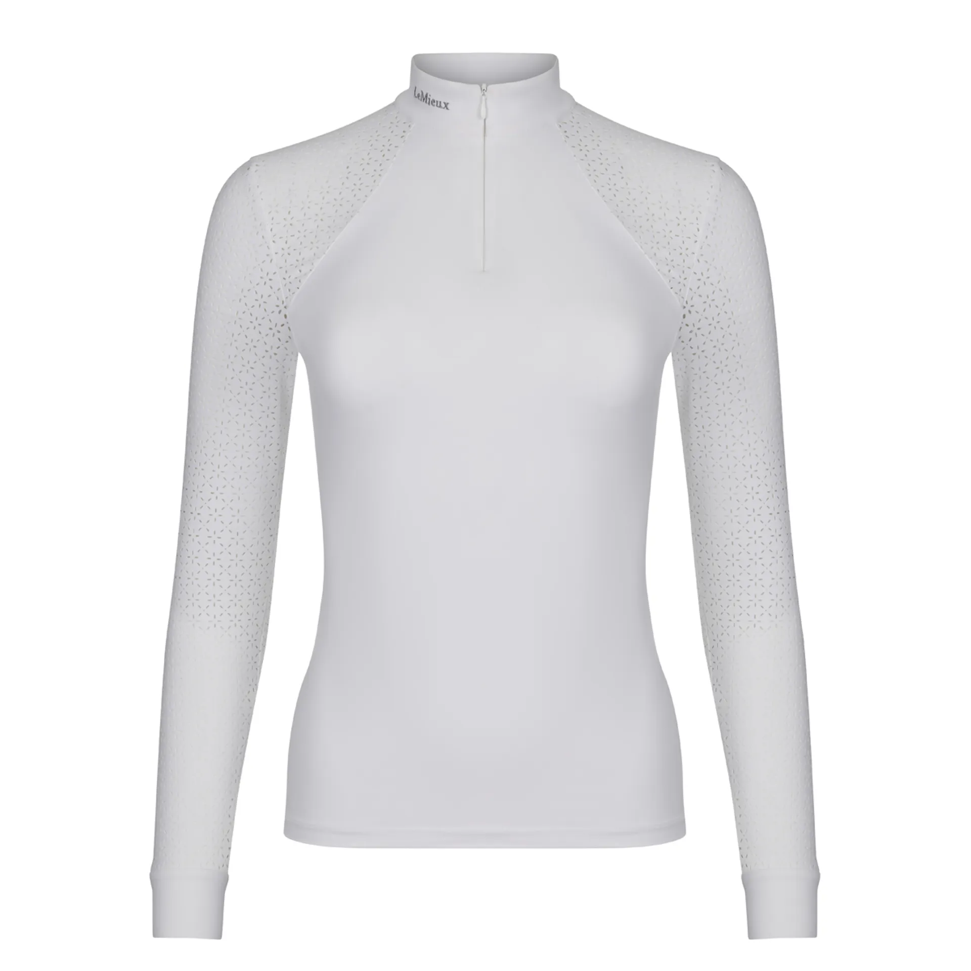 The Olivia Show Shirt provides the perfect blend of elegance and performance with super soft stretch fabric. Finished with a white show collar with LeMieux stud detail.