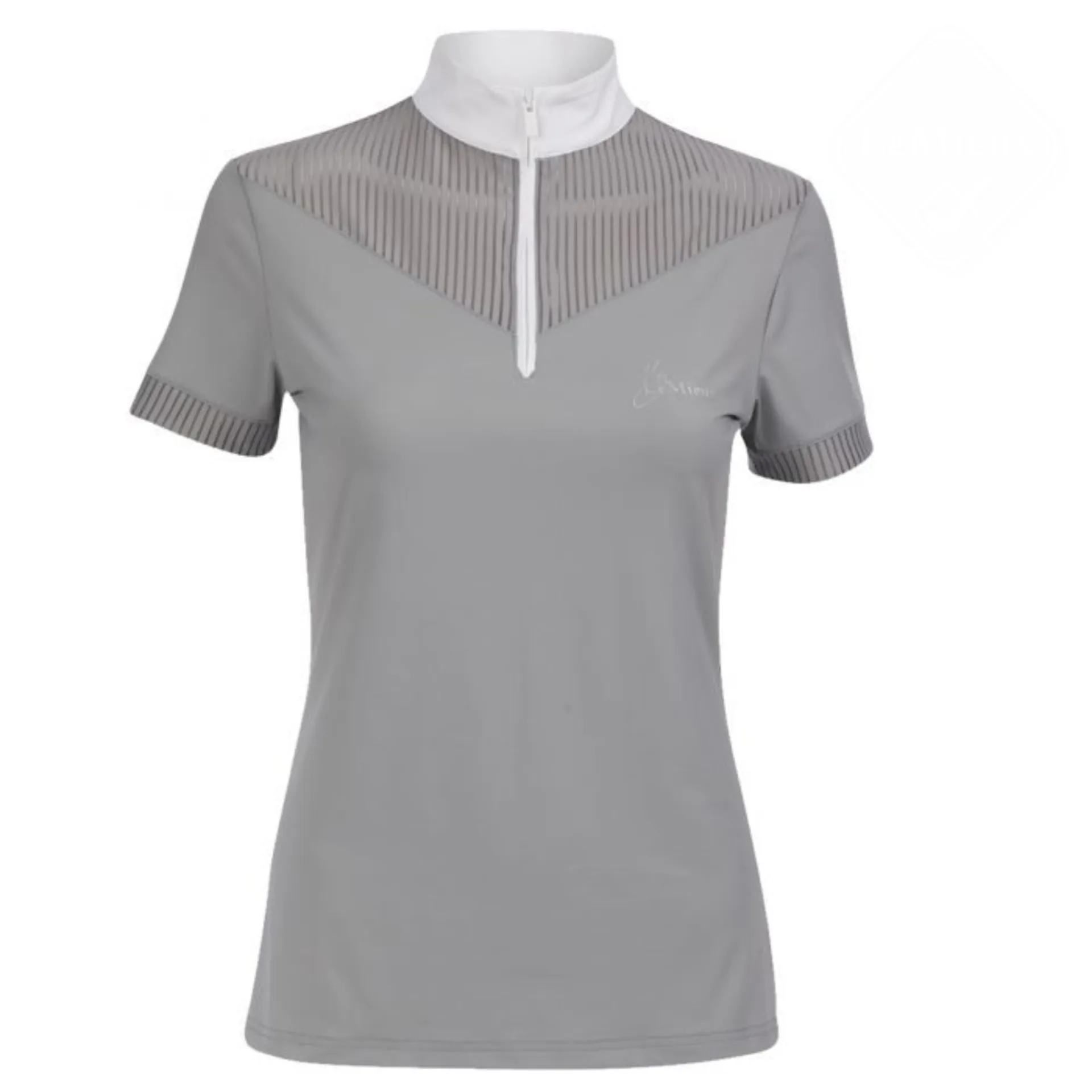 This elegant competition shirt is made from luxuriously soft, high stretch fabric that moves as you move. The delicate sheer stripe detailing ensures comfort, breathability and perfect cooling when worn under a jacket. The smooth, high-performance base material effectively regulates heat and moisture, whilst being shaped for a tailored yet flexible fit. The Adrina Show Shirt is finished with a contrasting white collar and LeMieux zip detailing.