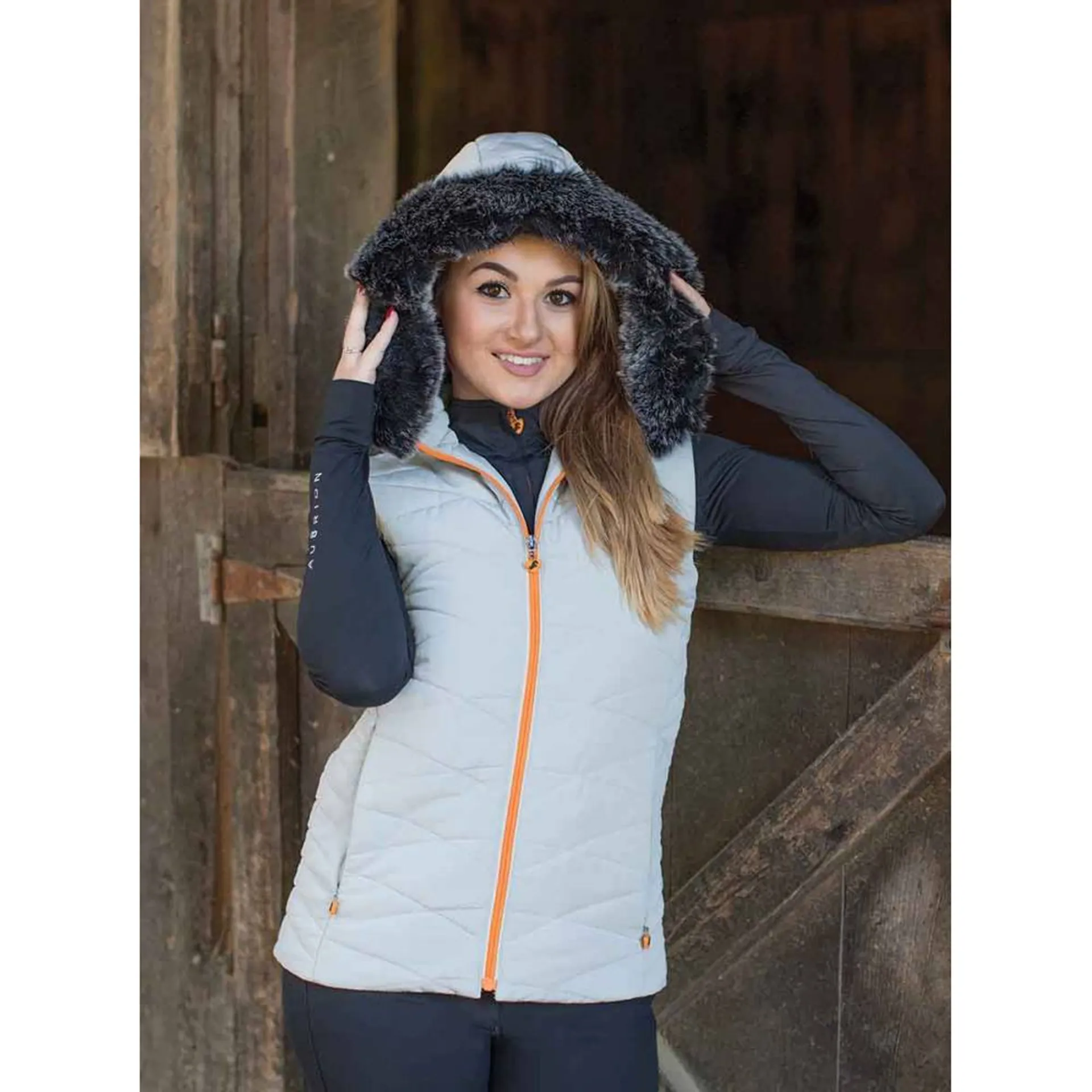 Aubrion Thistledown Padded Gilet is a mediumweight quilted gilet with fur trimmed hood for stylish layering.