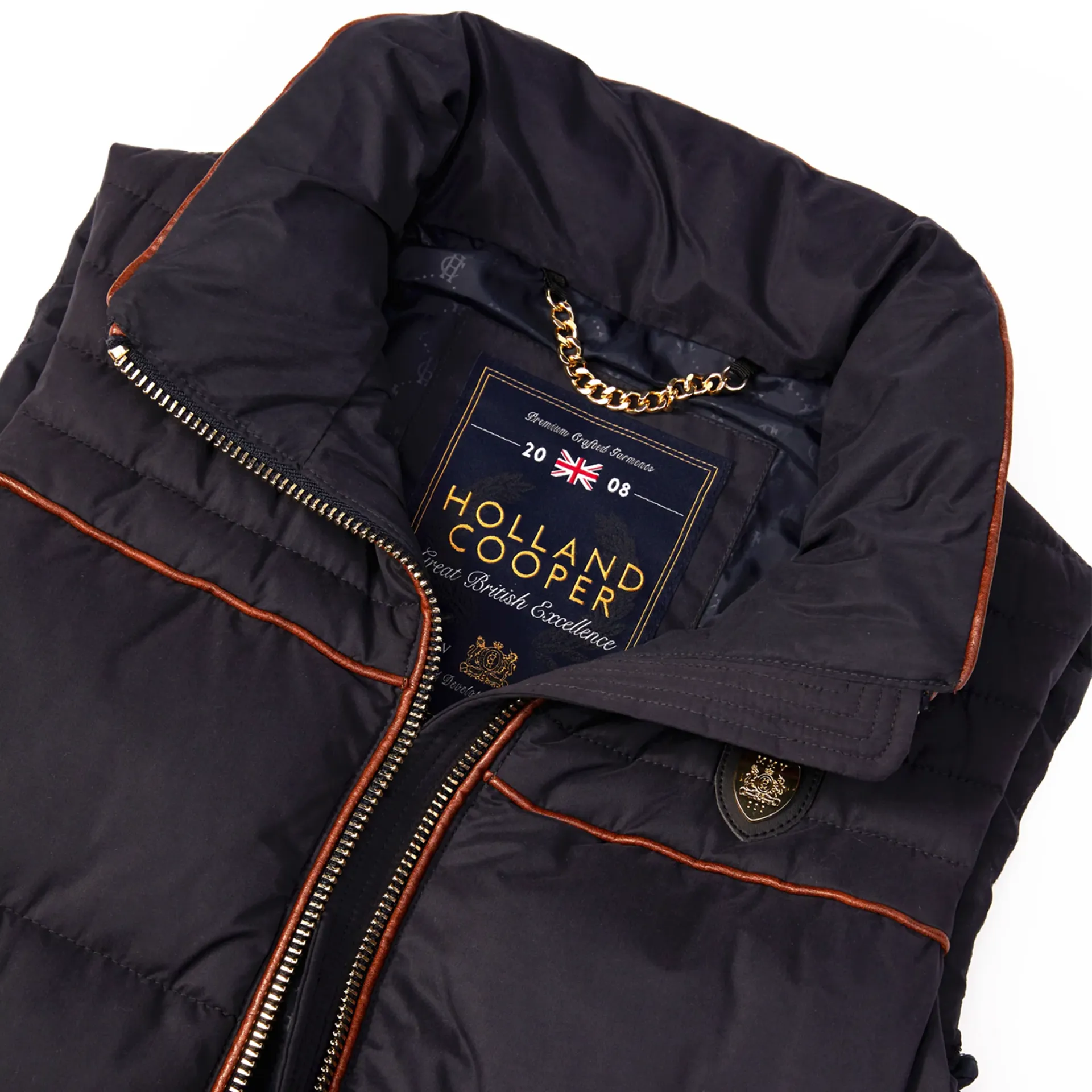 Crafted from a soft matte outer shell fabric, the Banbury gilet is the perfect companion for those colder days. Light weight and filled with our Sorona eco fill, this gilet is designed to keep in the warmth. Detailed with shearing side panels for a close fit and adorned with our iconic gold HC hardware and badge.