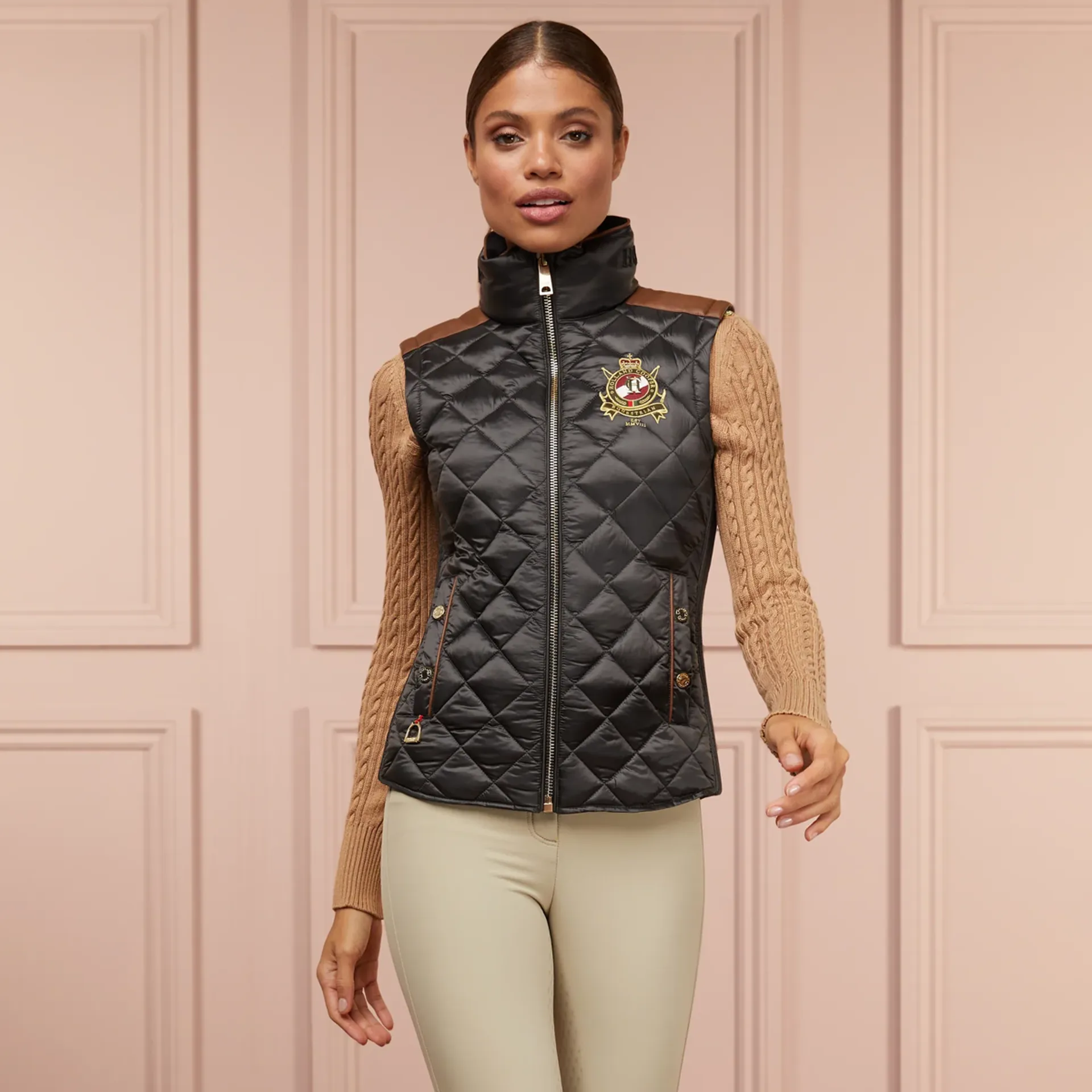 The Diamond Quilt Riding Gilet is designed with stretch pin tuck sides allowing for a close cut silhouette - perfect whilst riding. The pin-tuck seams provide gentle elasticity allowing for a wide range of sizes that provide comfort without compromising on style. This gilet is perfect for on or off your horse and can be styled multiple ways.