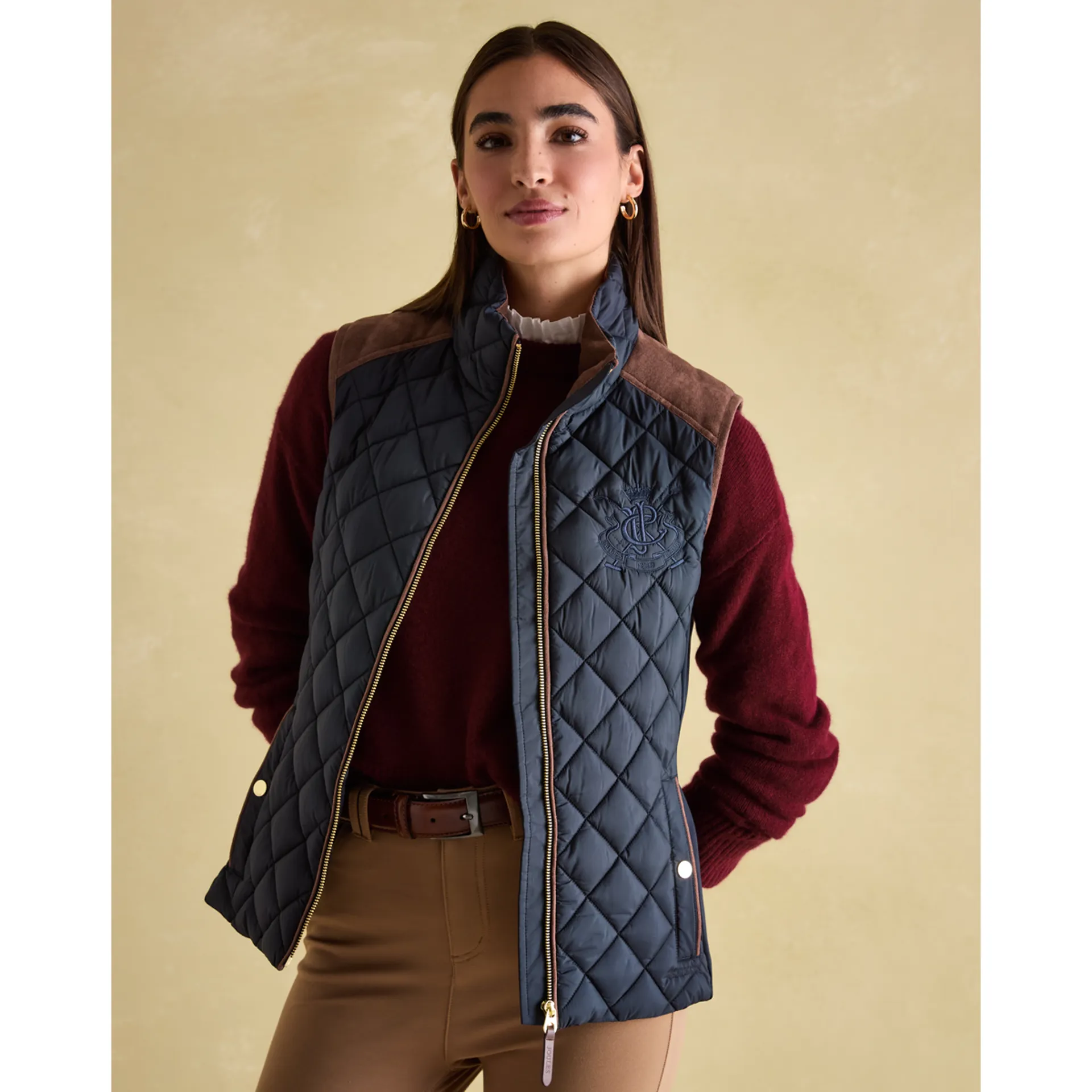 Question(s) answered about Joules Ladies Braemar Luxe Showerproof Diamond Quilted Gilet - Navy