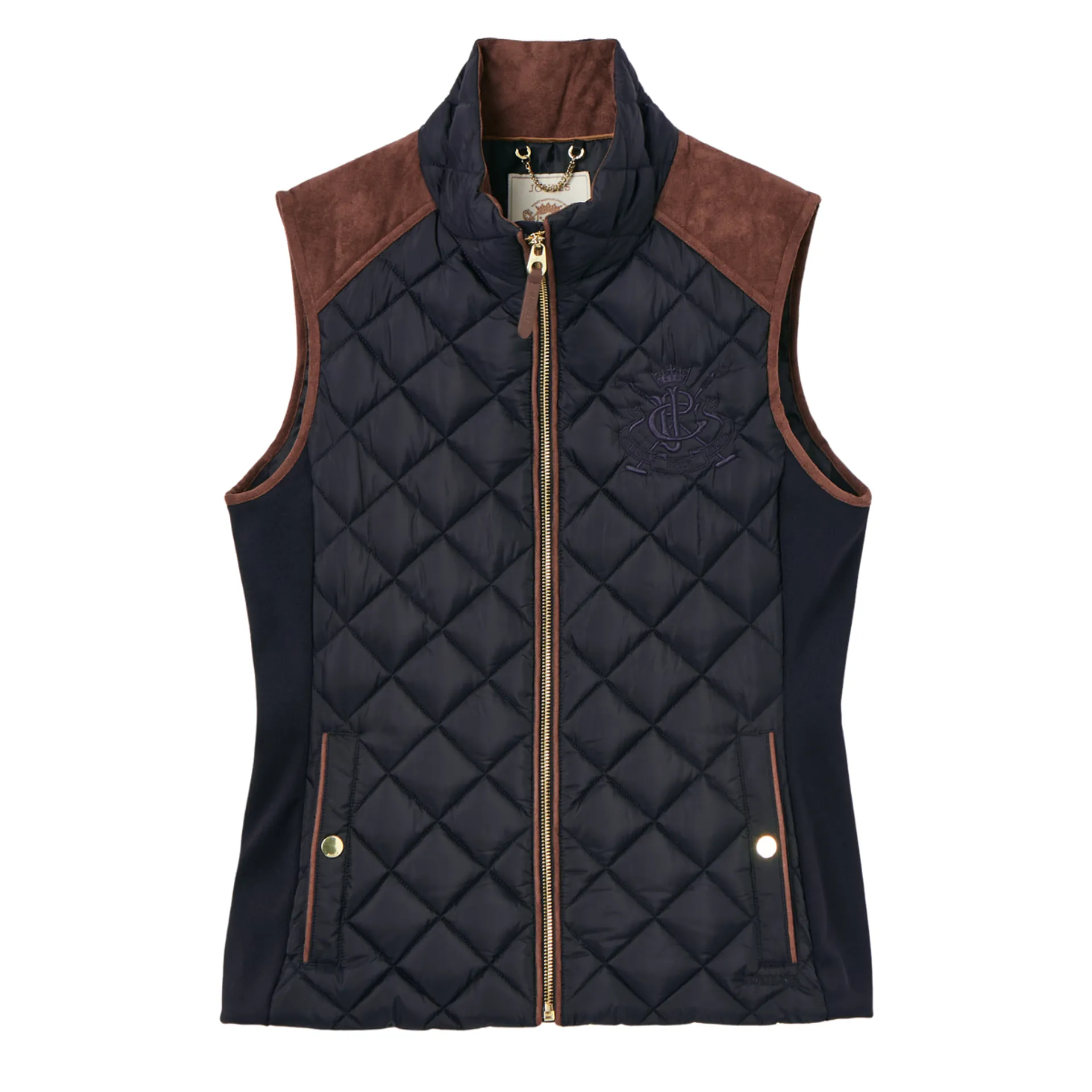 Suedette details offer a little change in texture, the intricate crest embroidery is a reminder of the quality and craft and the quilted back belt is further proof that this coat is more than just a gilet - it's an expression of true countryside style.