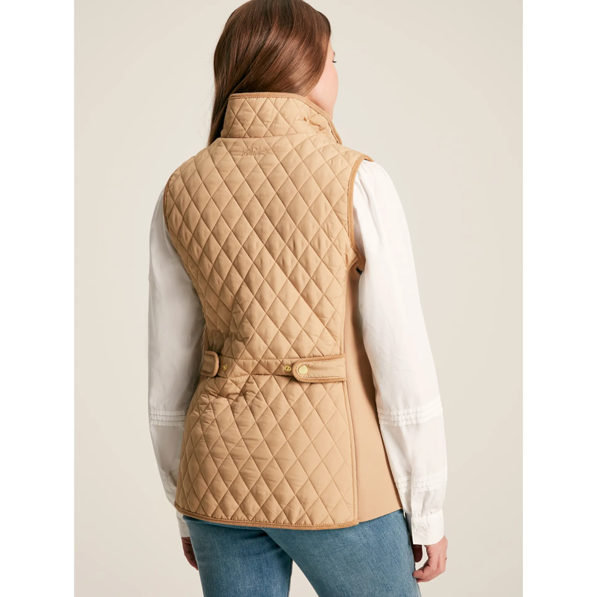 Question(s) asked regarding Joules Stately Ladies Showerproof Diamond Quilted Gilet - Beige
