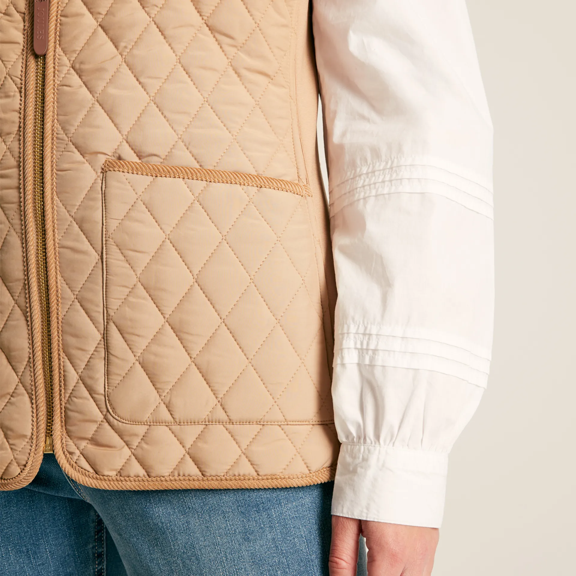 Question(s) answered about Joules Stately Ladies Showerproof Diamond Quilted Gilet - Beige