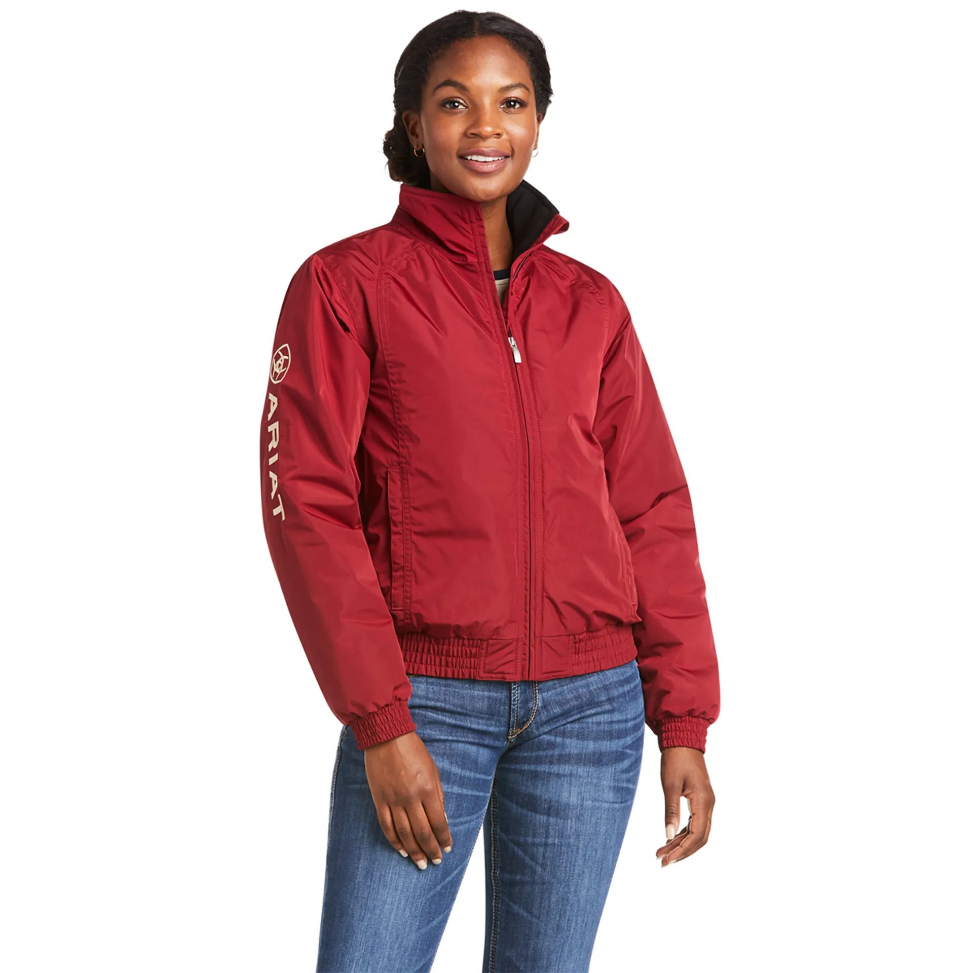 The Ariat Stable Jacket is a water and wind resistant jacket with a lightweight polyfill quilted lining. Featuring a mock collar, fitted hem and logo embroidery as well as zippered entry for team embroidery.