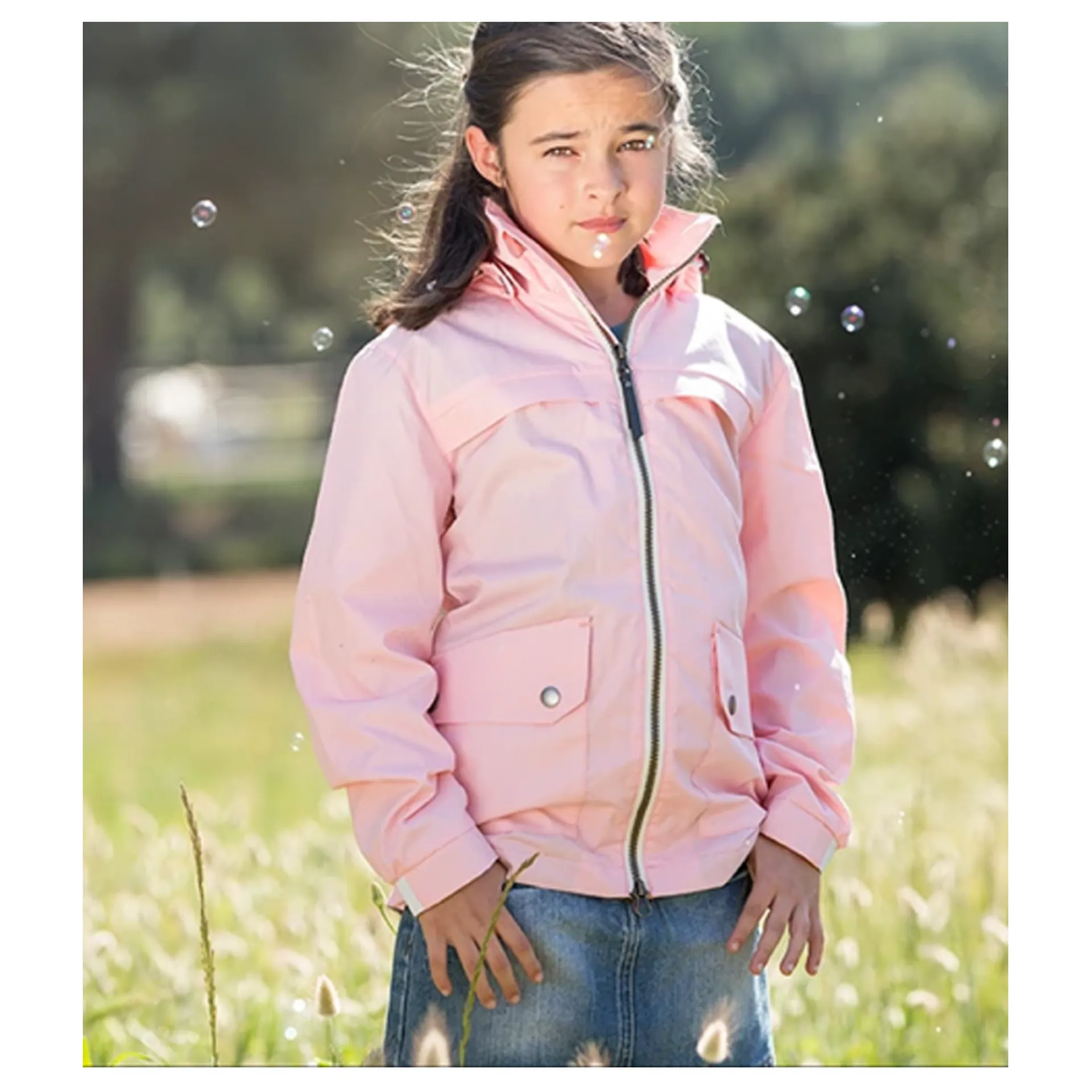 This windproof and showerproof jacket is the perfect on trend Spring Summer outerware piece for little girls and boys who love their ponies! This practical piece has cute equestrian design details with a stylish look.