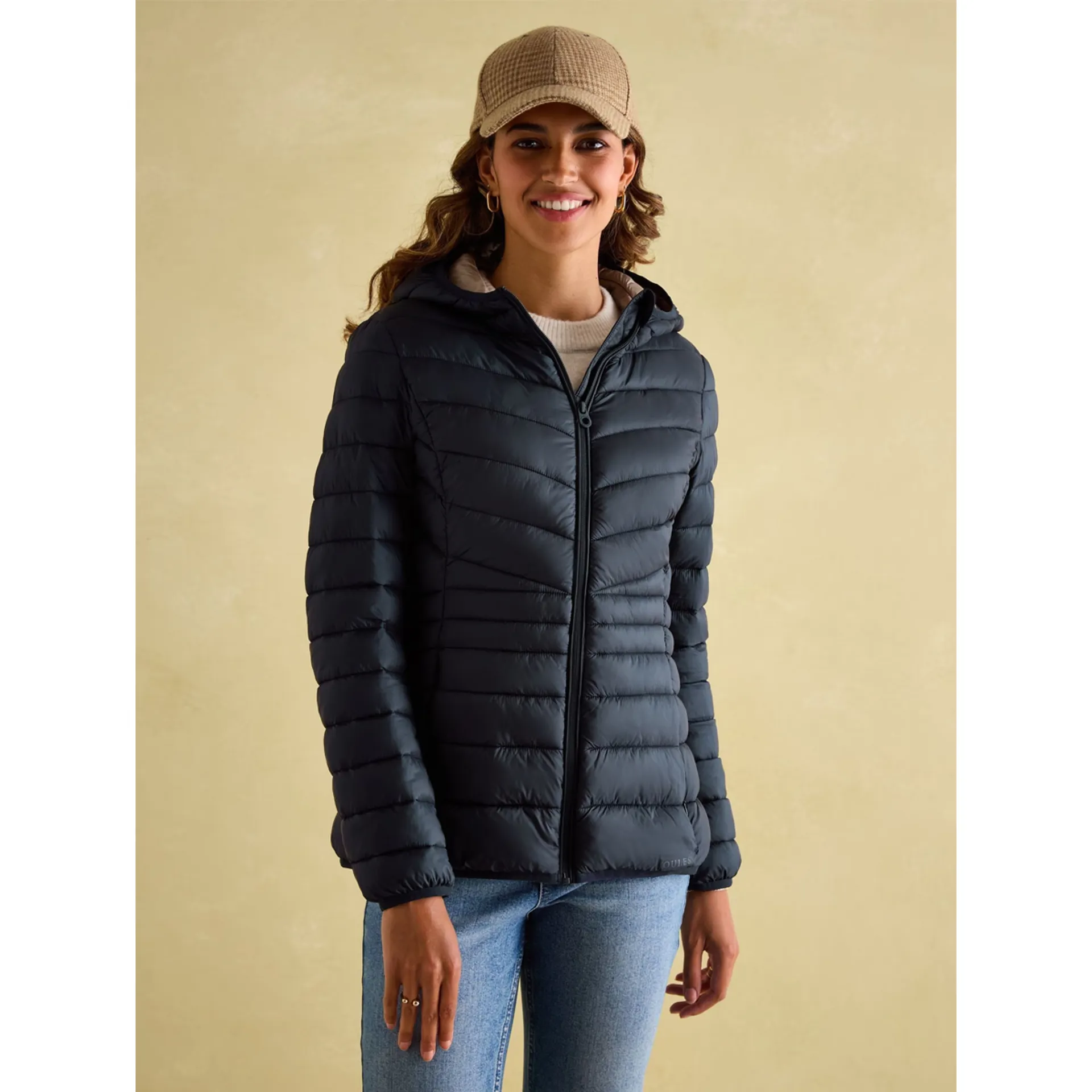 Designed to fit and flatter, it has a blend of chevron and horizontal baffles throughout, as well as smaller baffles at the waist to create a cinched effect.It features a zip fastening, a hood for extra coverage and two invisible zip pockets to the side. Finished with Joules branding to the cuff and under the hood and binding trims.