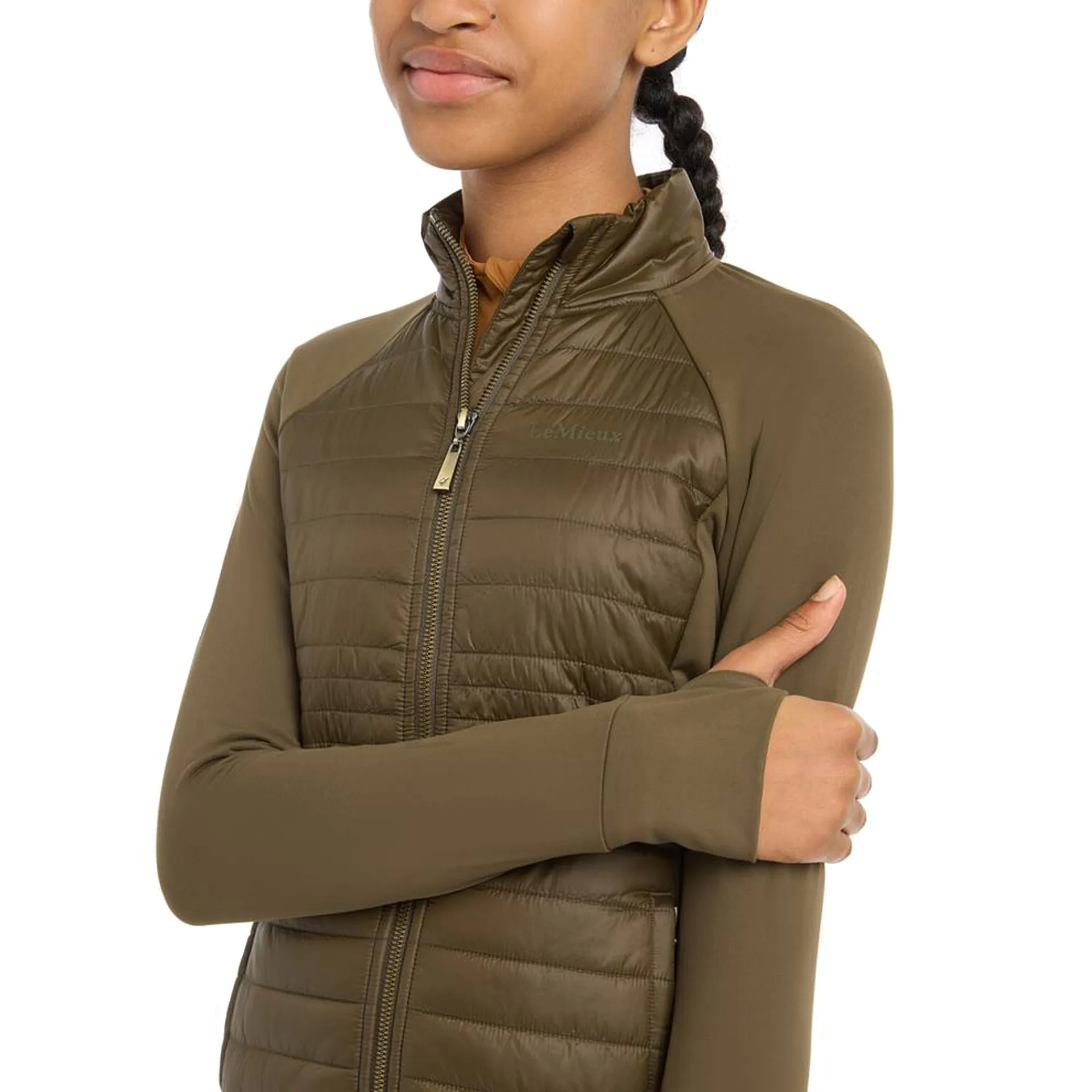 Designed for layering under coats, this style has super soft jersey sleeves and side panels for a flattering fit, while lightweight woven baffle quilted insulation at the back and front keeps you cosy and warm. As a step toward sustainability, the non-slip fill is made with fully recycled materials.The discreet high-build LeMieux print logo on the chest and a metal badge LeMieux logo on the back of the neck indicate a mark of quality.