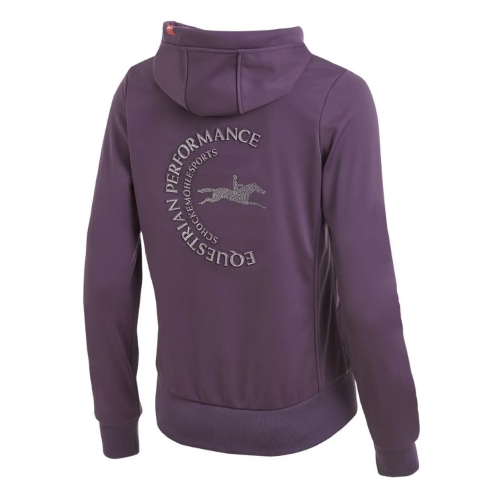 So comfy, that you probably don't want to take it off: the Candy Style Hoodie by Schockemöhle Sports! But this sporty sweater made of jersey also knows how to convince with its design: the trendy print with glitter and crystals on the back provides a stylish look. The big kangaroo pockets are equipped with a zipper, so that nothing can get lost. The hoodie has a waisted shape and comes with knitted rib on hem and cuff. Useful feature: the hood is attachable to the back of the jacket and therefore cannot distract you, even if it gets a little bit faster in the saddle.