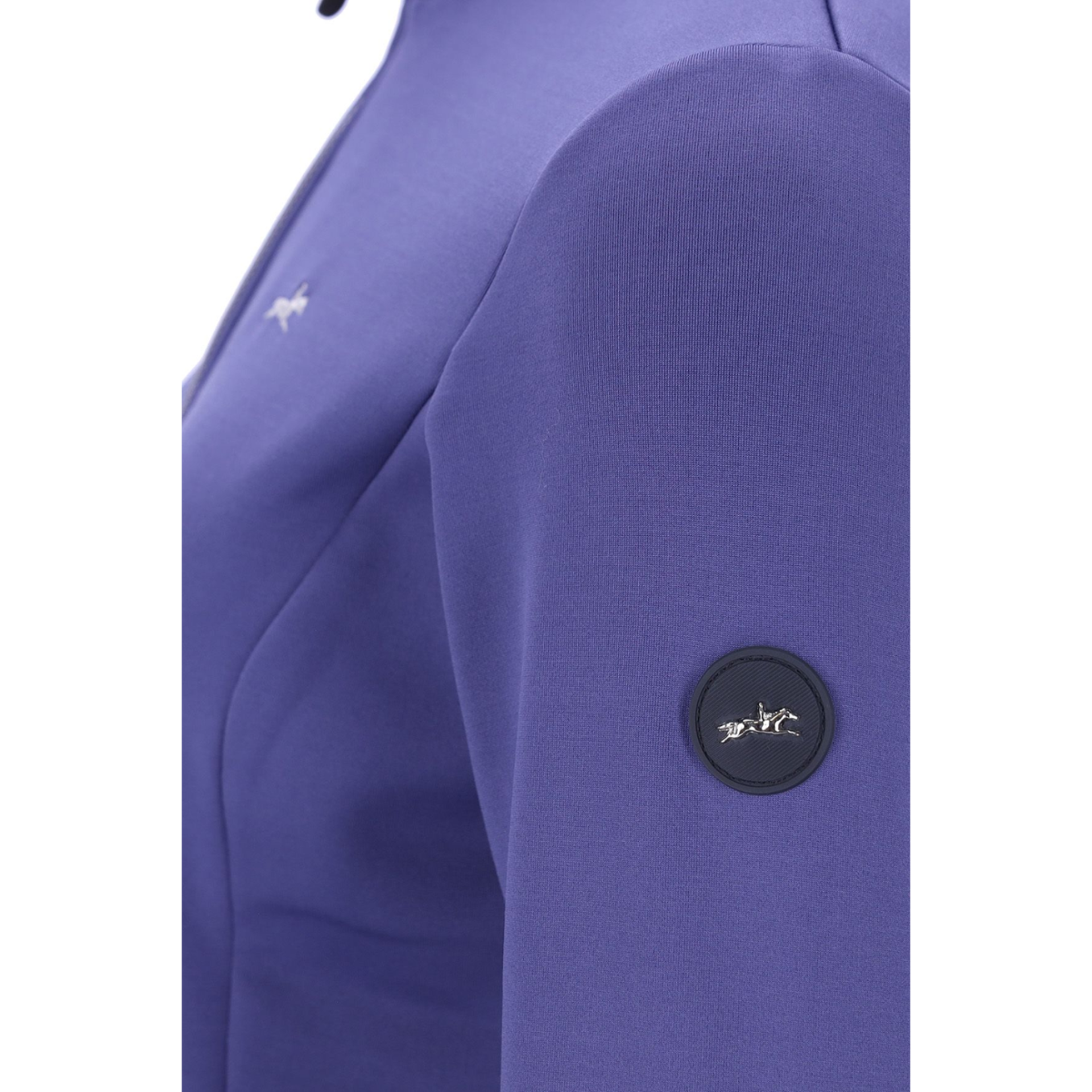 The SPReny Style is a bonded women’s jersey jacket that blends sporty elegance with exceptional comfort. Its soft velvet interior provides a cozy feel against the skin—perfect for cooler days at the stable or on the go. Flattering seam lines create a feminine silhouette, while the two-way zipper allows for ease of movement. Two zippered pockets offer secure storage for everyday essentials. The hem and sleeve cuffs are finished with elastic tape for a snug fit. A standout flock and glitter logo print on the back and a decorative glitter stripe at the collar add fashionable accents. Refined details like the embroidered horse logo on the chest and a logo badge on the sleeve complete the design—ideal for riders who appreciate both function and style.