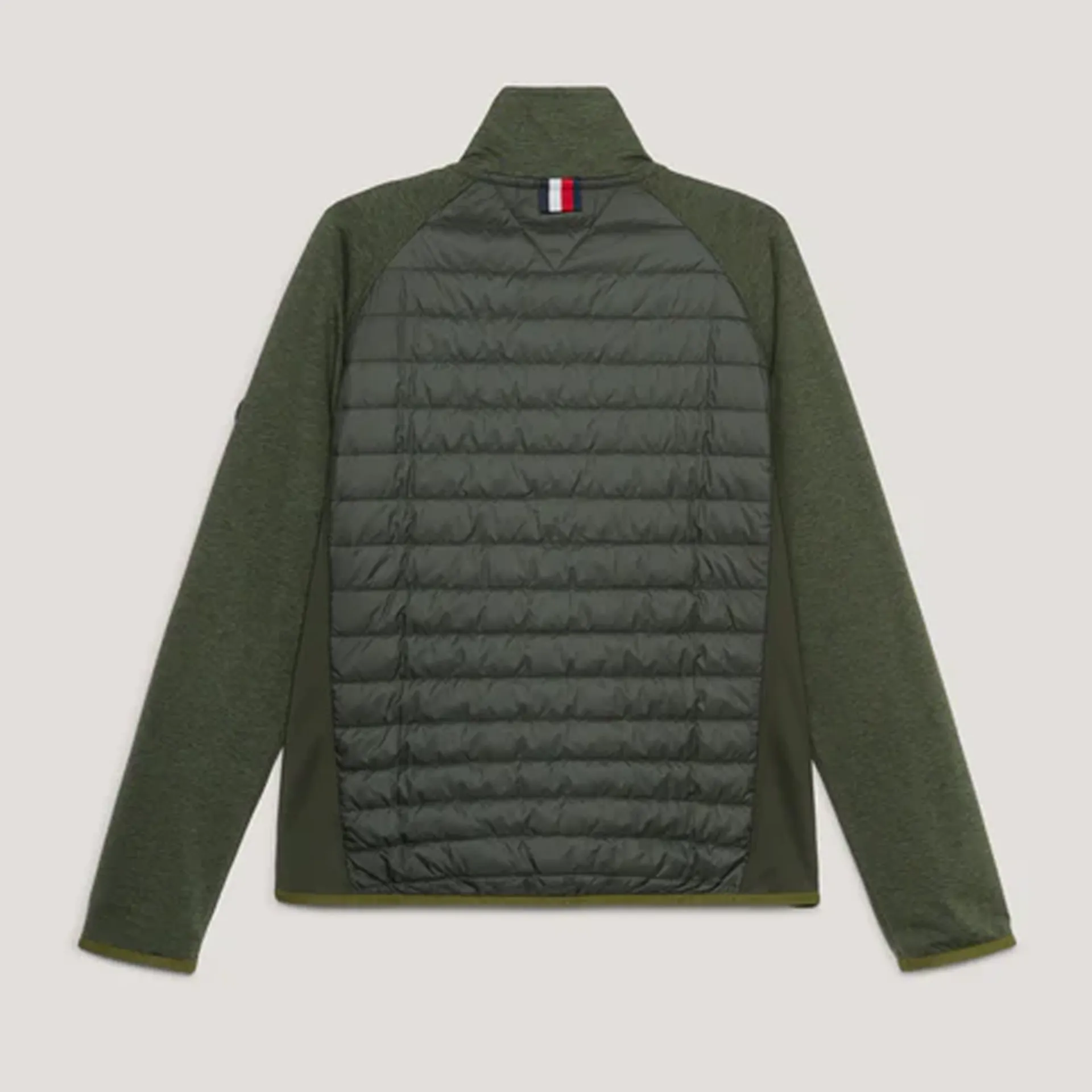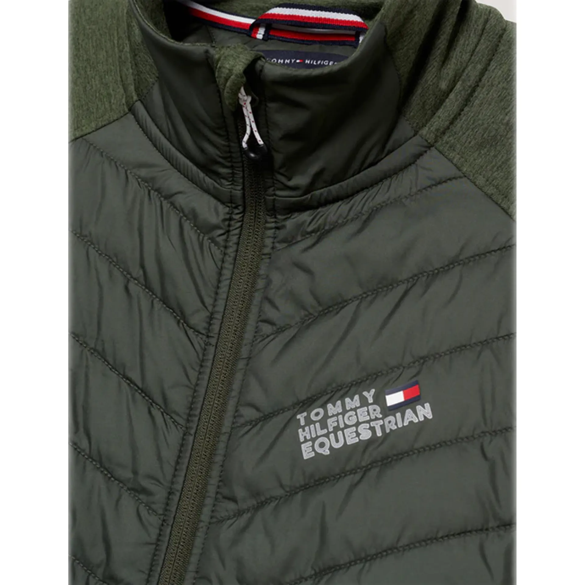 Perfect to keep you warm while providing maximum flexibility our hybrid jacket has features a stretch sleeve and side panels for more freedom of movement. Designed with reactive heat balance fabric this jacket was made to releasing heat in warmer temperatures, and locking it in when the weather cools down. With bi-material construction for comfort and performance, reflective Tommy Hilfiger logo print on the chest. 100% recycled padding inside for the more sustainably conscious equestrian.