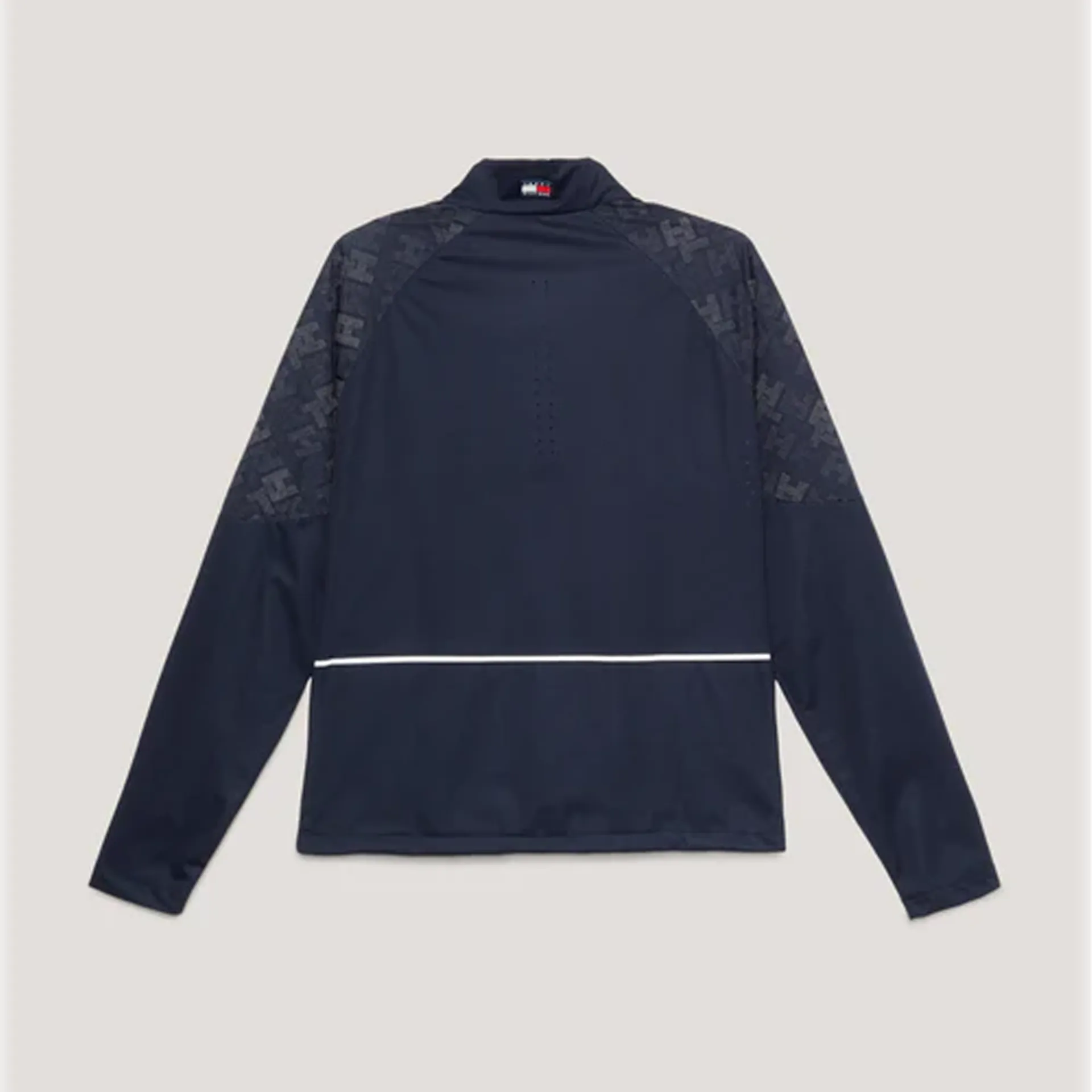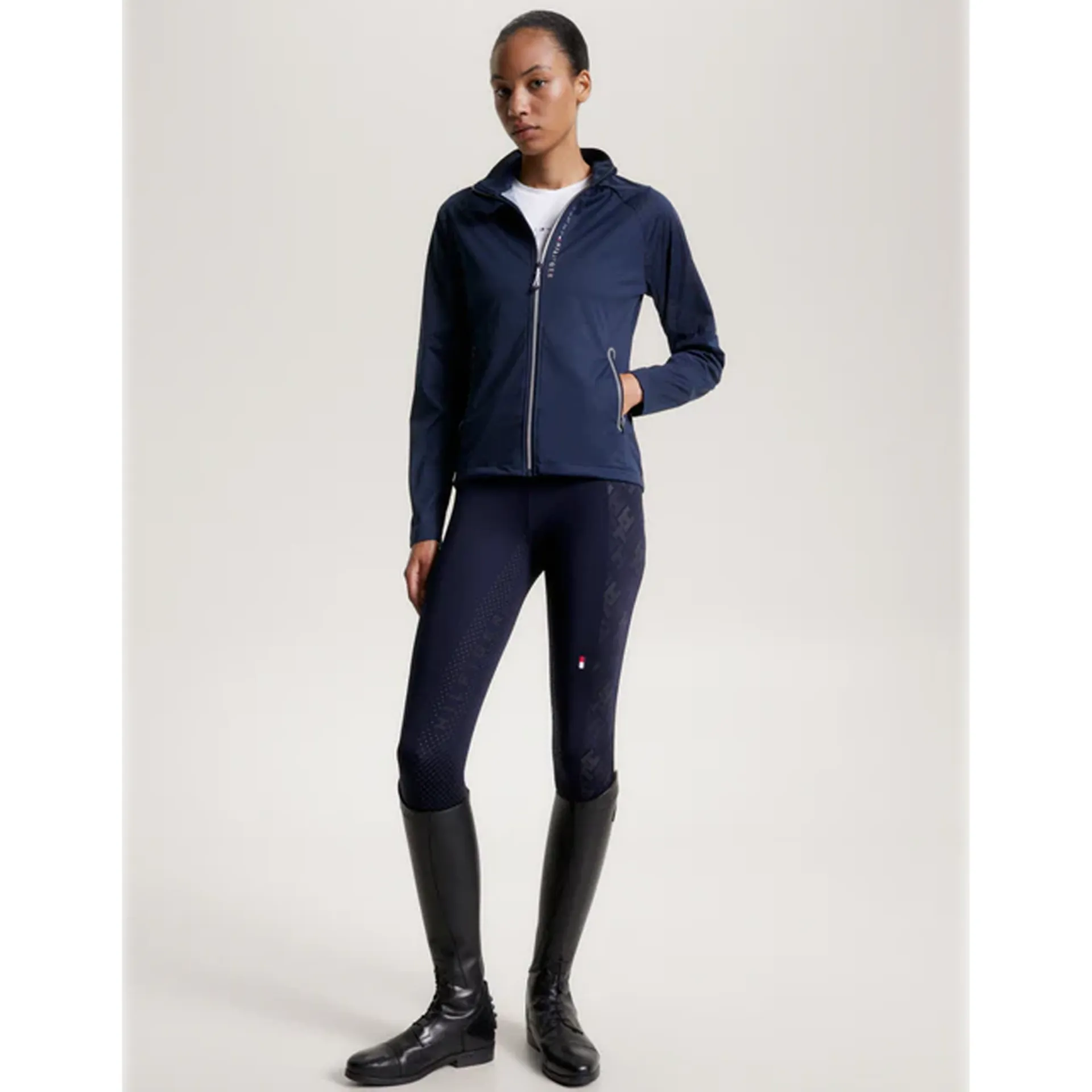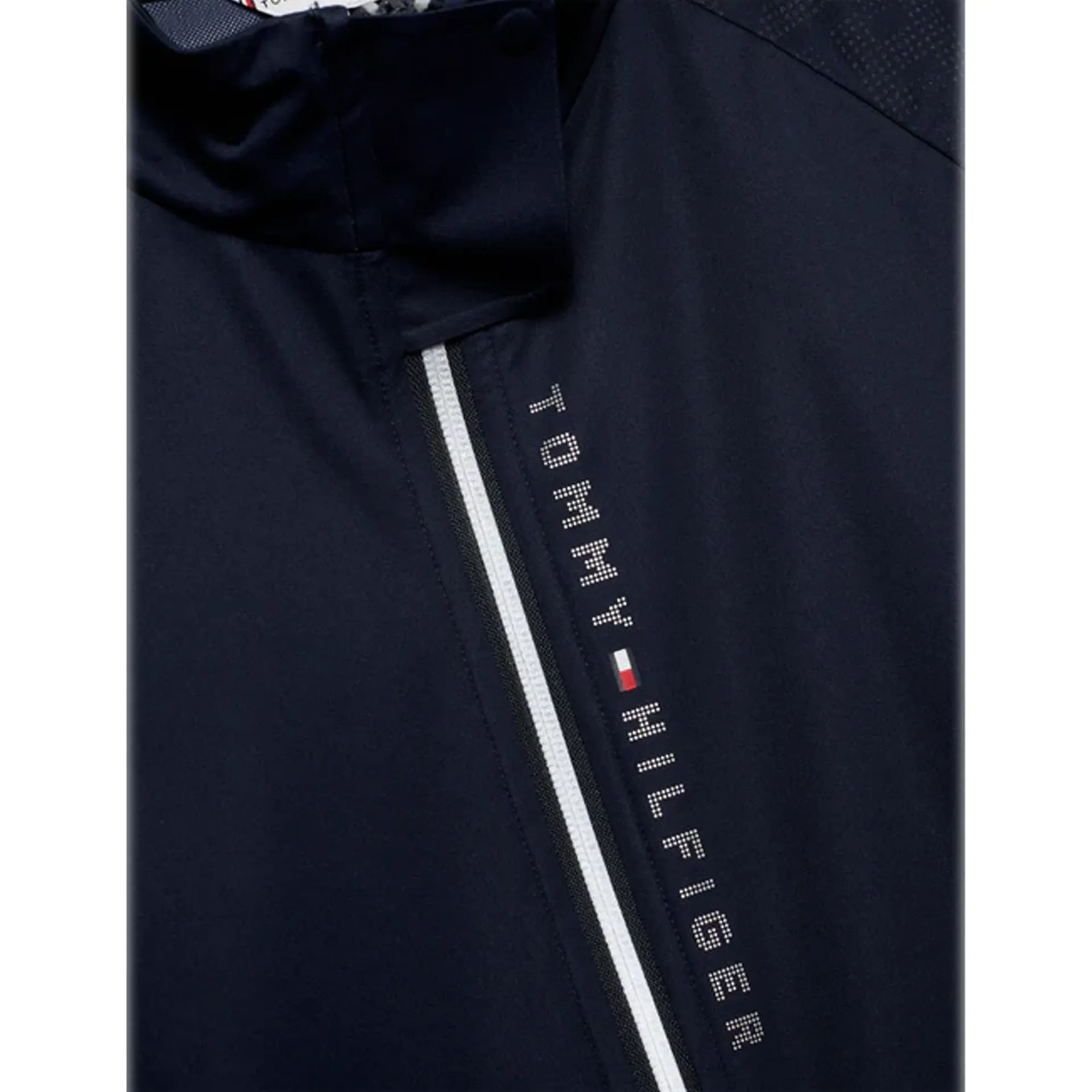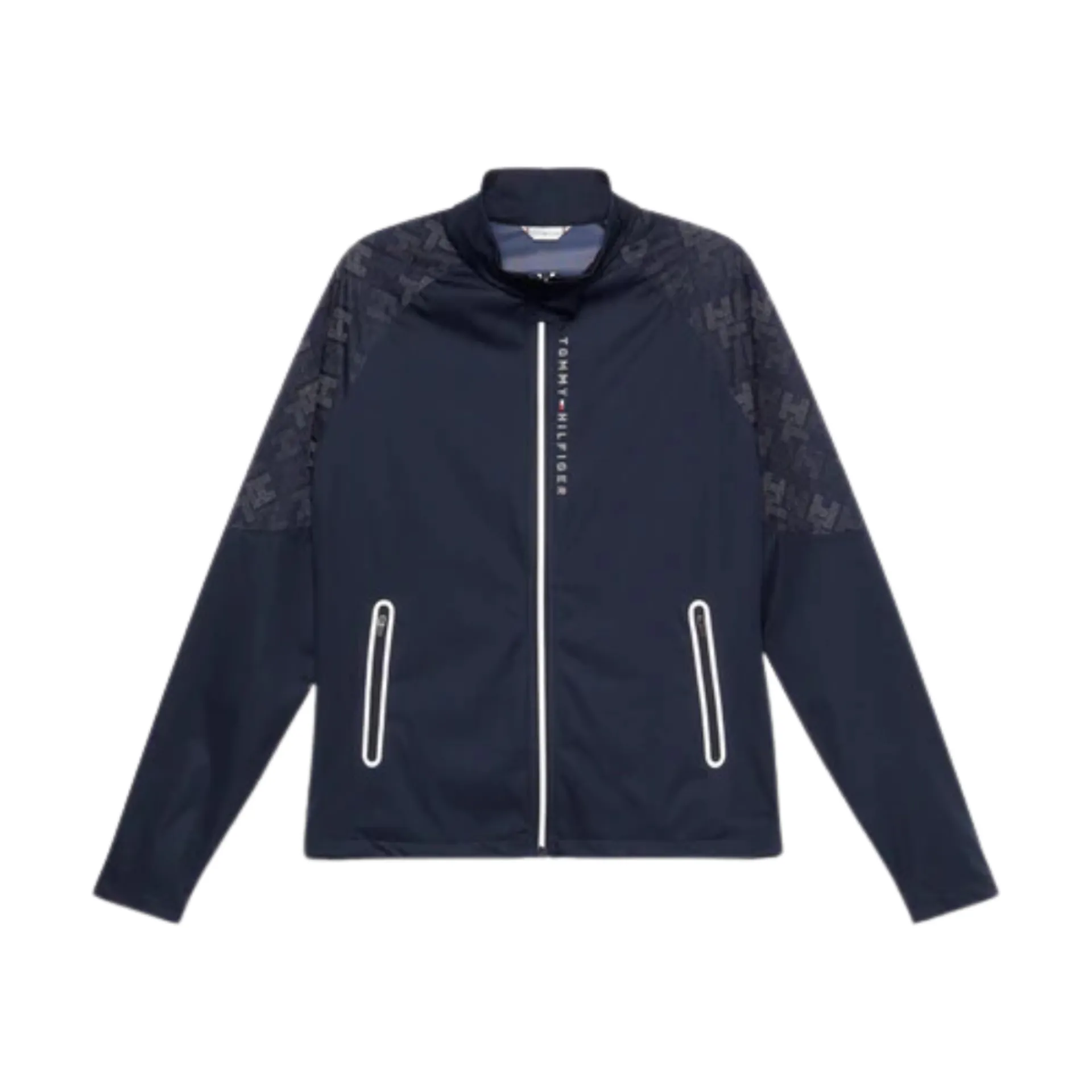 The Zurich Monogram Windbreaker Jacket fuses fashion and safety, designed in a windproof fabric that was made to be seen. Featuring strategically placed reflective TH print at the front, back and shoulders and reflective tape finishes placed at the sleeves, back air vent and pocket and front zip closures allowing for greater visibility. Strategically placed ventilation perforations keeps you cool and comfortable when on the go. A sporty silicon horse flag logo placed at the neck and a reflective Tommy Hilfiger Equestrian print at front chest completes the look.