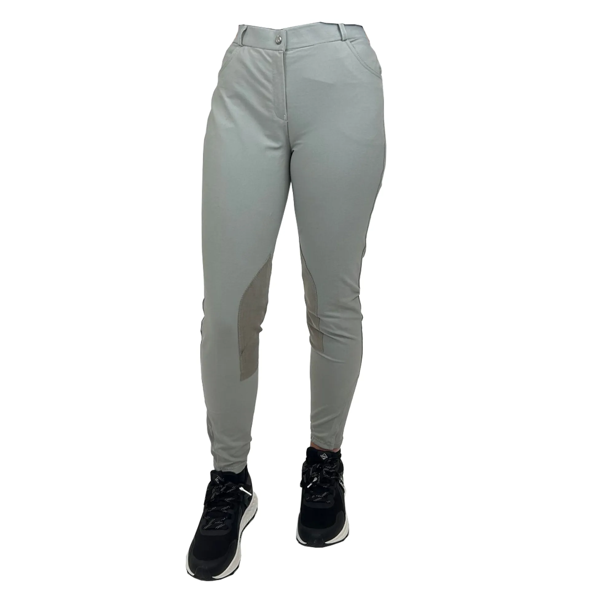 These breeches are ideal for both everyday and competition, with comfortable stretch fabric, wide waistband, mid-waist design and front pockets.