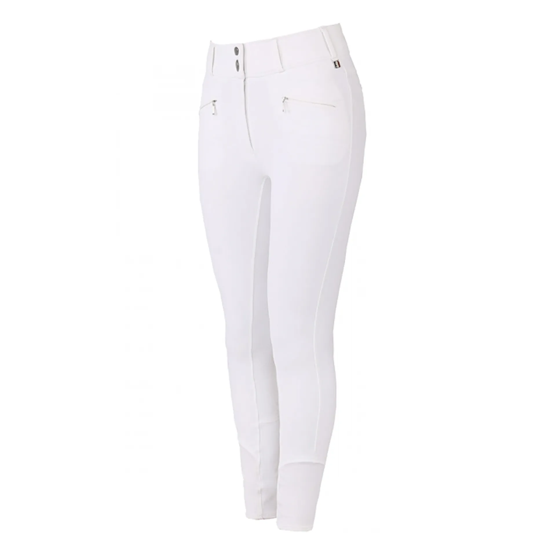 Slim fit breeches with full grip dot pattern & two buttons closing. Technical, powerful 4-way stretch, water, dust & grease repellent fabric. Zipper pockets in front. Embroidery on fake back pocket & on centre back belt loop.