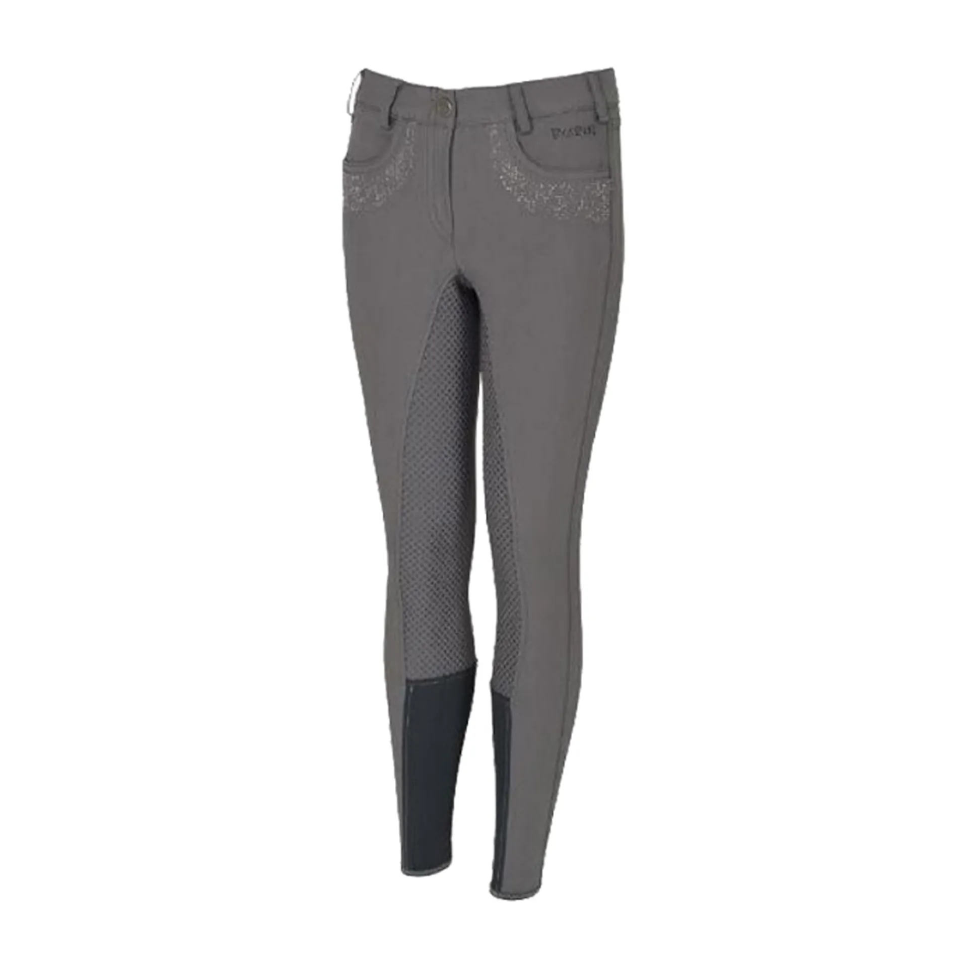 Pikeur Kalotta Full Grip Breech in are a great value and high quality breech for girls and small adults. Featuring 3/4 full grip seat tone in tone to outer material, stretch leg fastening, 2 convenient slanting pockets, and with strass applications at the front and back of the breech. Ideal for everyday riding or competition.
