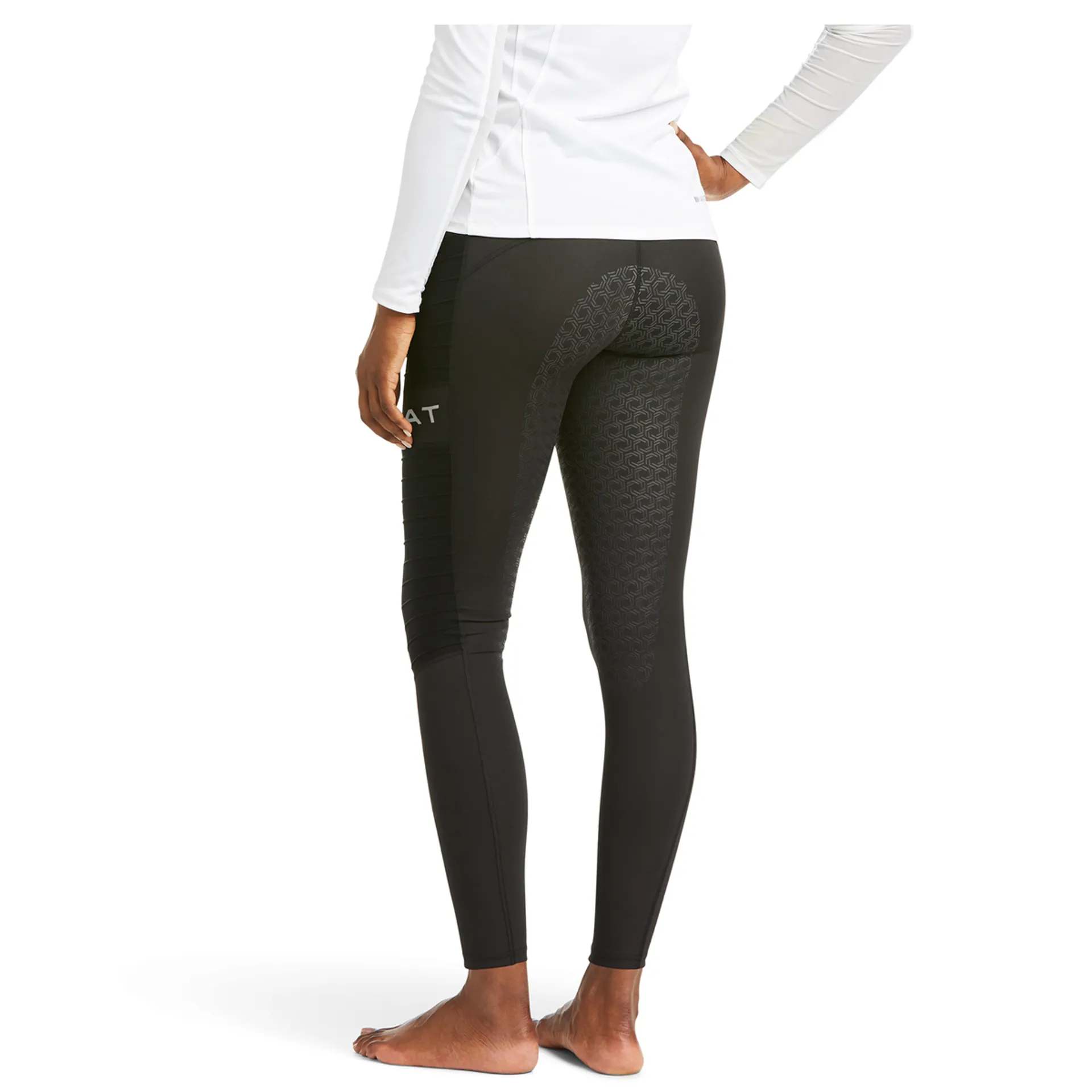 Ariat's tried-and-true Eos performance tight, now featuring sleek, motorcycle-wear styling. Offering flattering support and 21st-century style-meets-function details like full seat grip and conveniently placed pockets.
