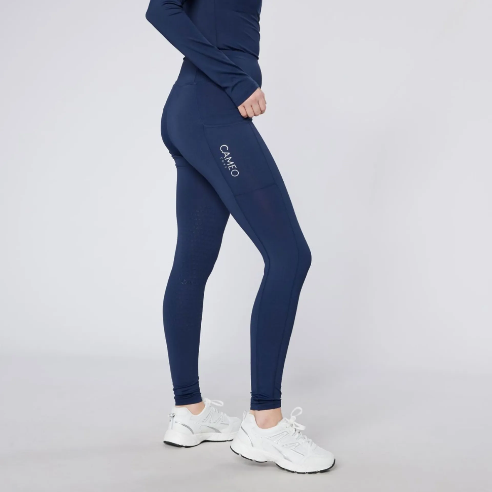 A great everyday ladies riding tight. Made using our CameoTech 4 way stretch technical fabric that provides comfort and freedom of movement. With the security of our CameoGrip knee silicone. Cameo Core Collection tights are further enhanced by the handy phone pocket with reflective silver CAMEO branding.