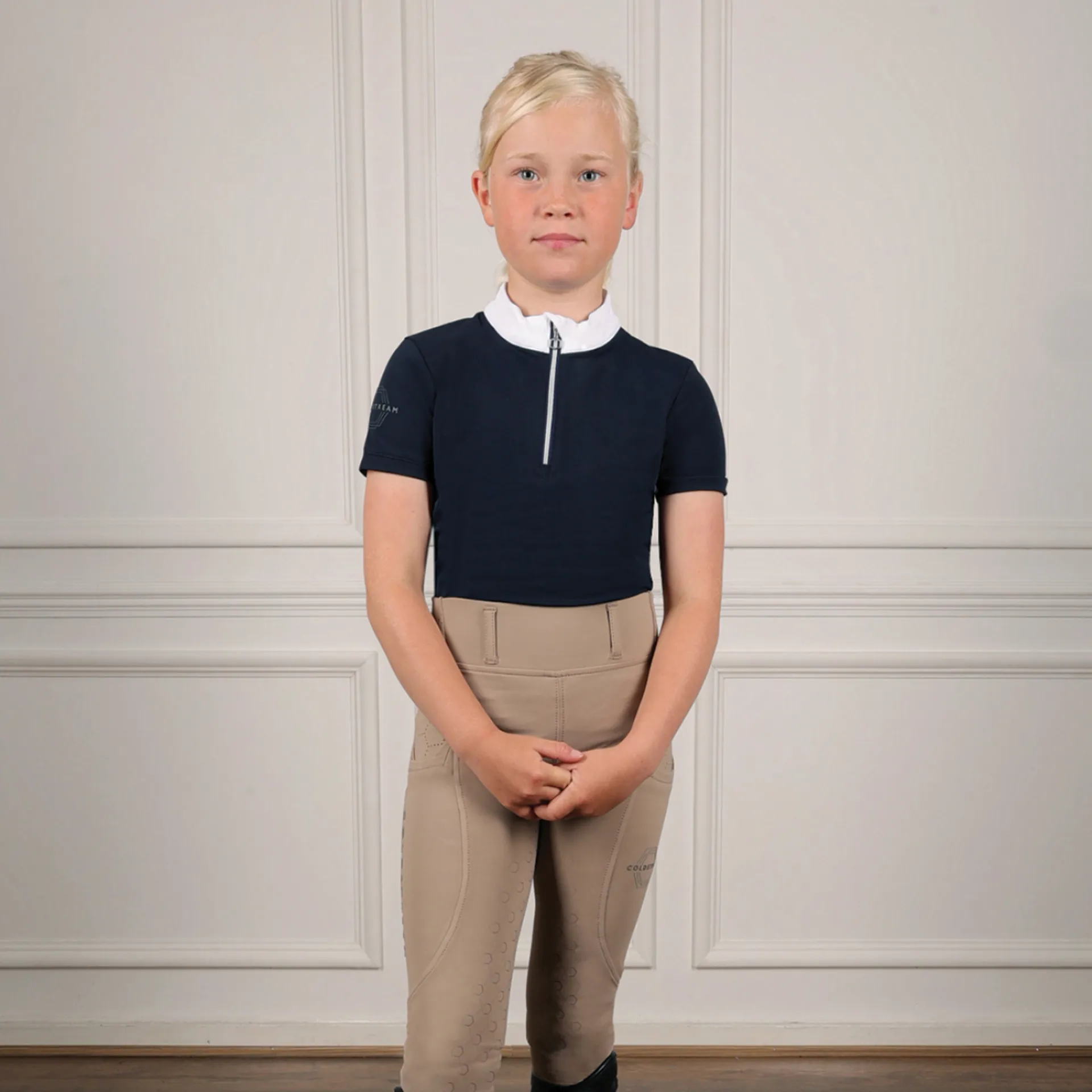 The oxnam competition riding tights give the smart appearance of a breech whilst offering the comfort of a tight. Offering a luxuriously soft feel against the skin, the tights boast moisture wicking and antibacterial properties. Following meticulous curation, the fabric originates from recycled plastic bottles making it both an eco-friendly and stylish choice. With technical 50+ uv block protection and innovative lined perforations vertically down each leg, it creates a lightweight, ventilated feeling which support high performance. Designed with a broad, high waistband, it creates a flattering silhouette on all body shapes and the advanced full seat silicone certifies saddle security. The perforated socks create airflow, an essential for the active athlete, which also reducing the bulk under long boots. Featuring two practical phone pockets with subtle blue detailing, finished with iconic coldstream branding in premium raised silicone