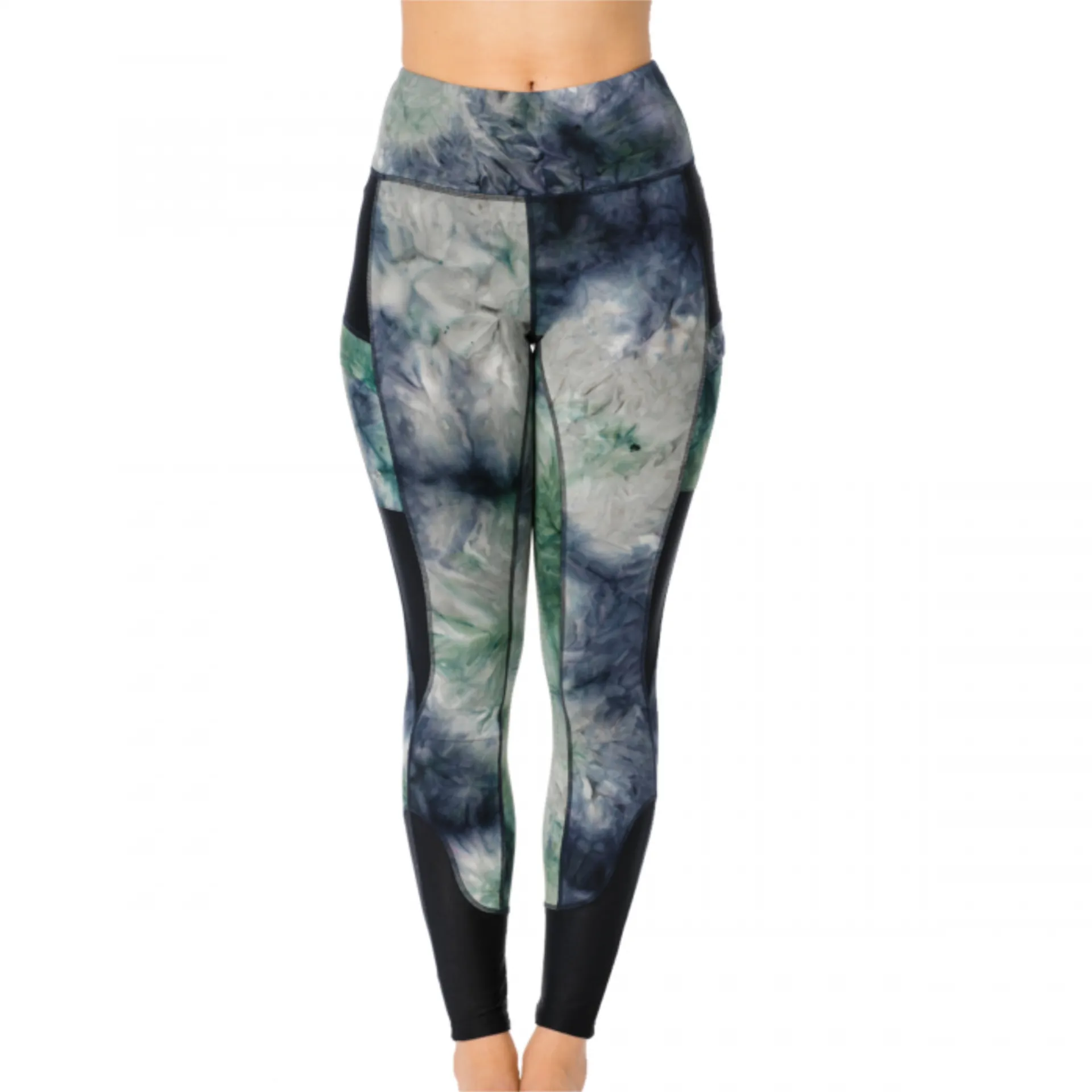 The Horseware Silicon Riding Tights - Green/Navy Tie Dye.